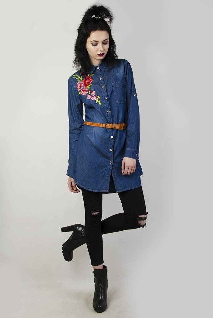 Granatowa koszula z paskiem, zapinana na złote guziki. Posiada naszywkę w postaci róży.