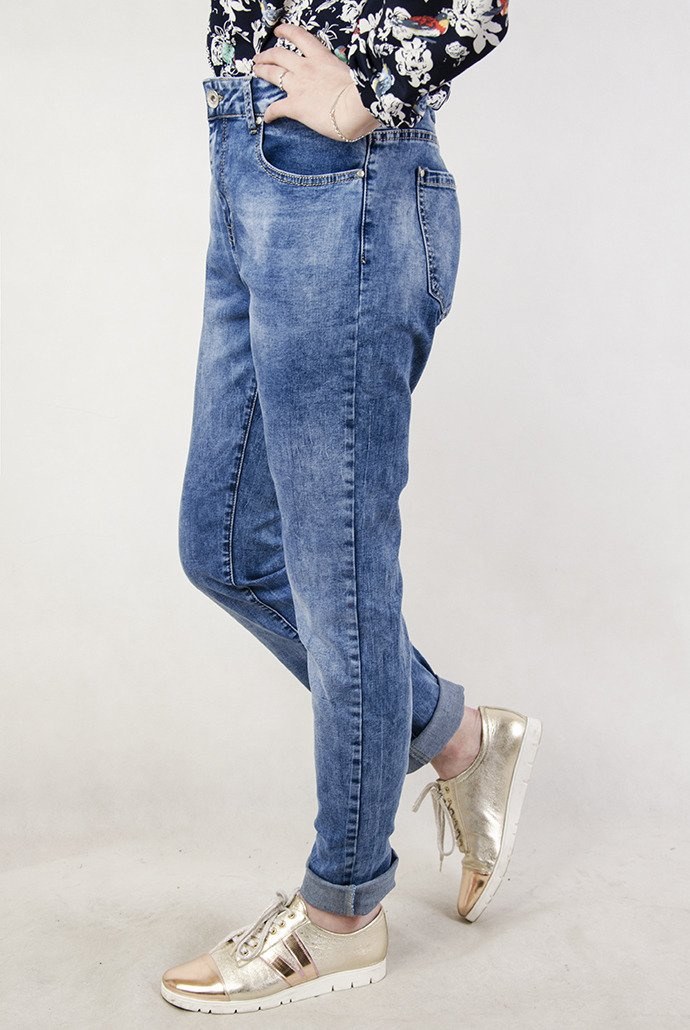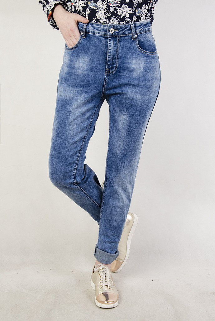 Spodnie jeansowe delikatnie cieniowane, długa nogawka.
