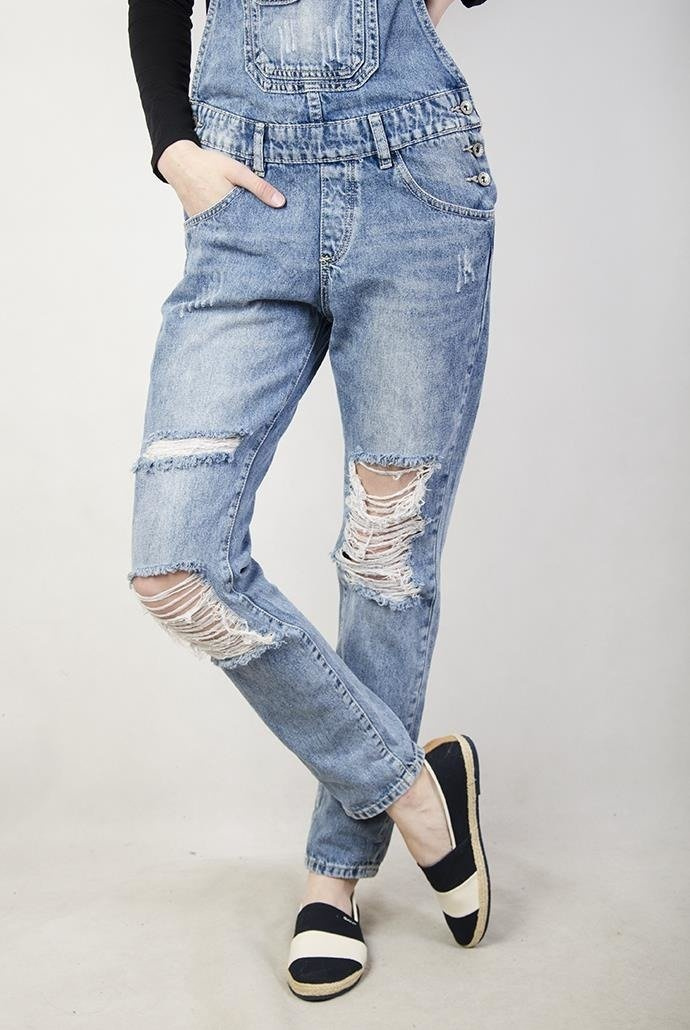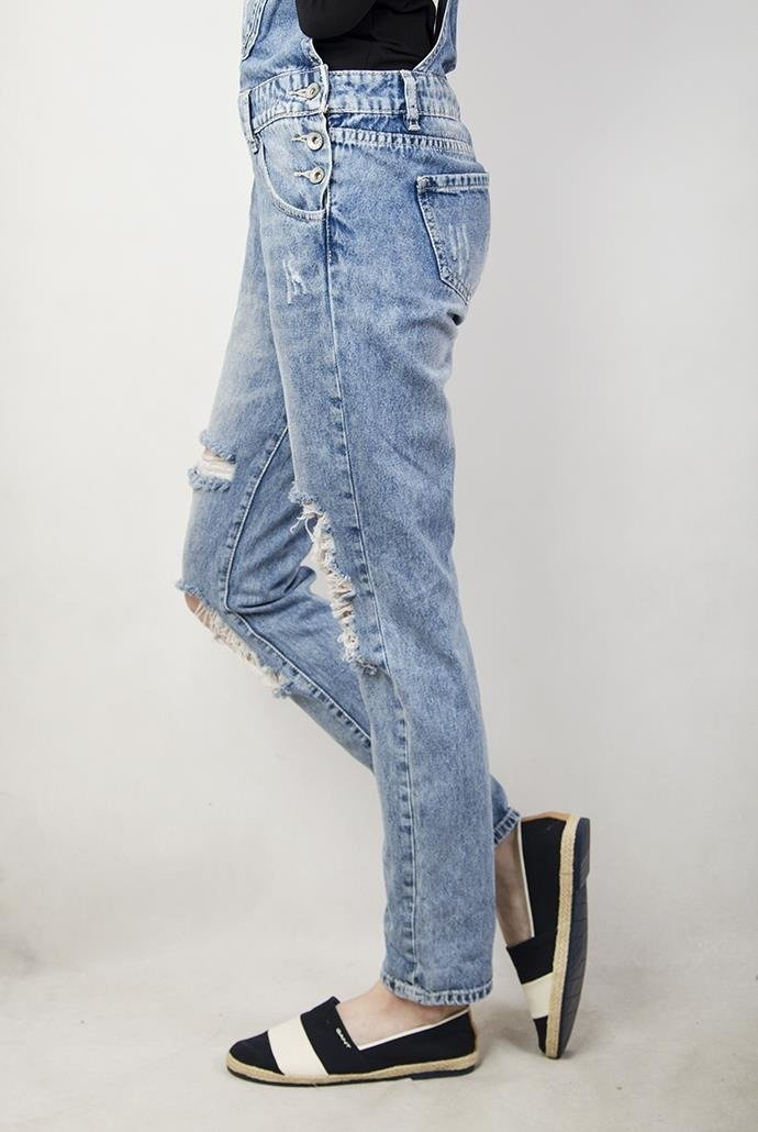 Ogrodniczki jeansowe z guzikami po bokach