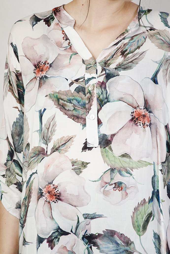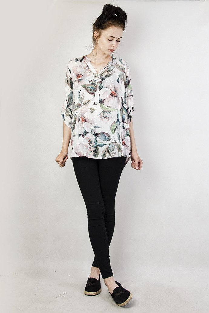 Koszula w kwiatowy wzór, z guzikami. Posiada możliwość zapięcia rękawa.