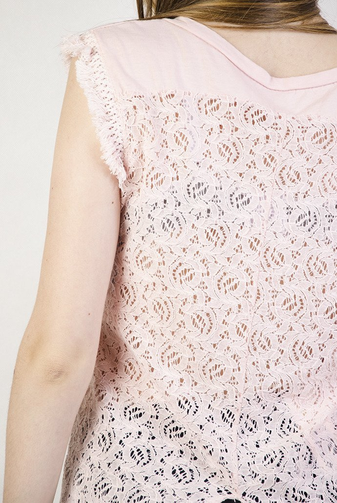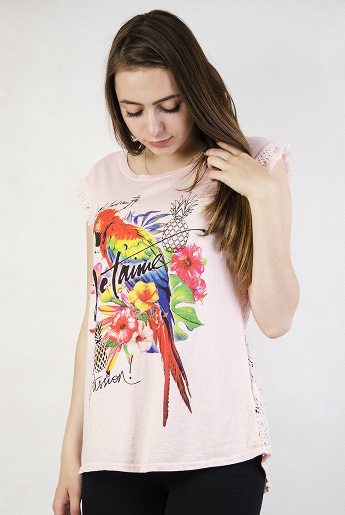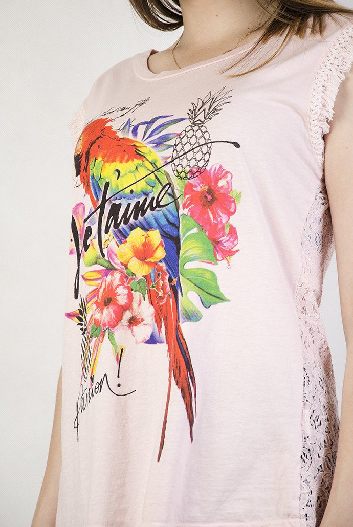 Jasnoróżowa bluzka bez rękawów z kolorowym nadrukiem