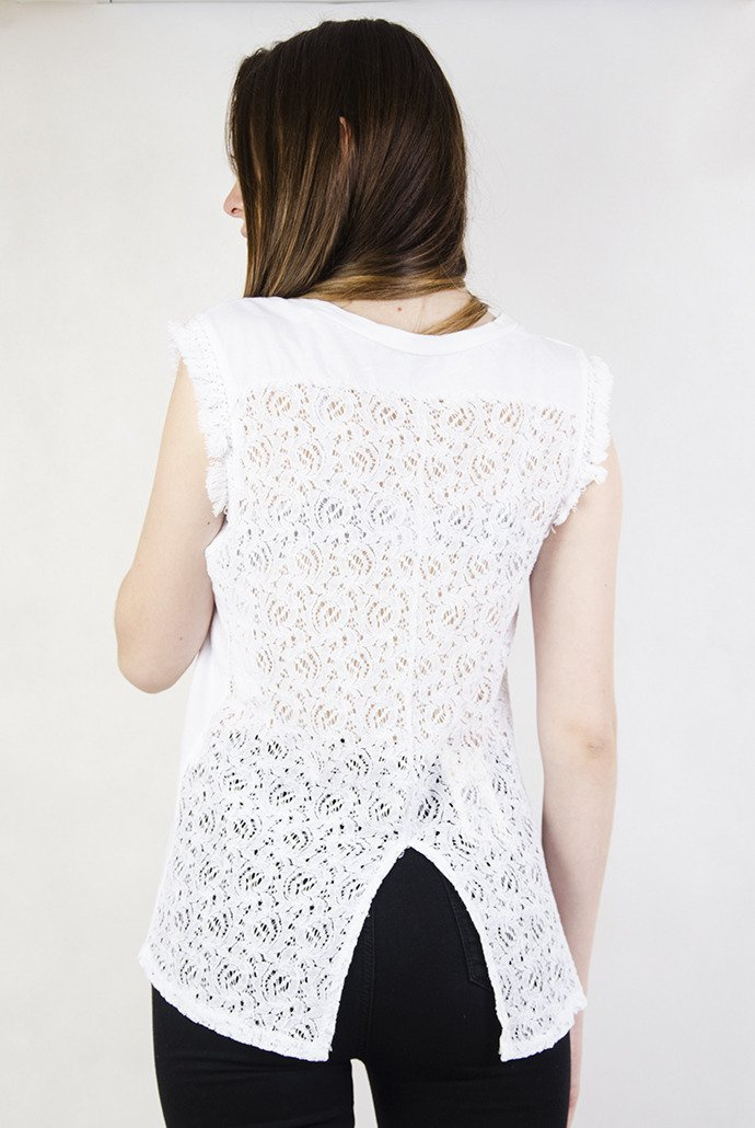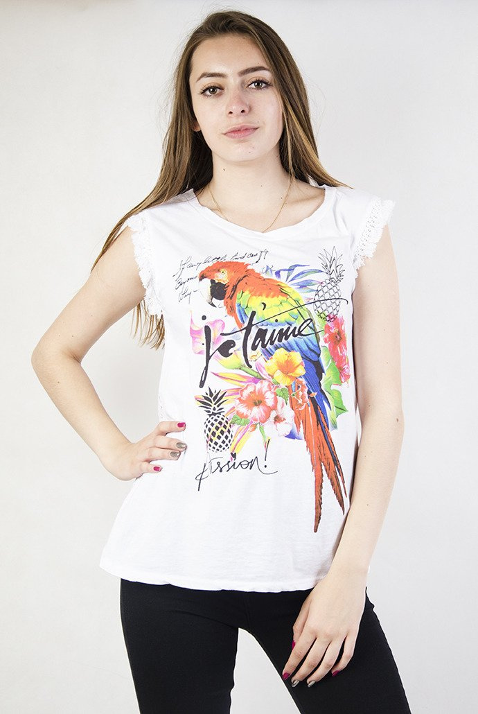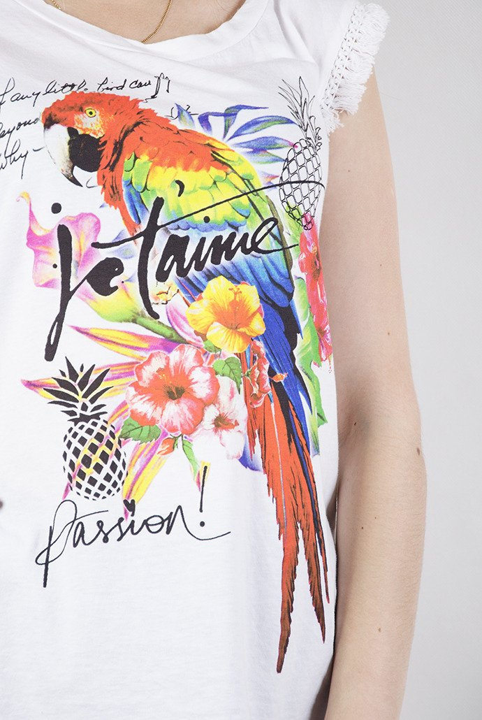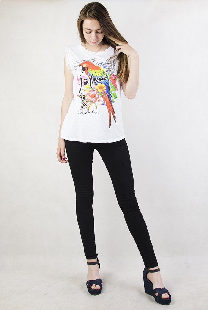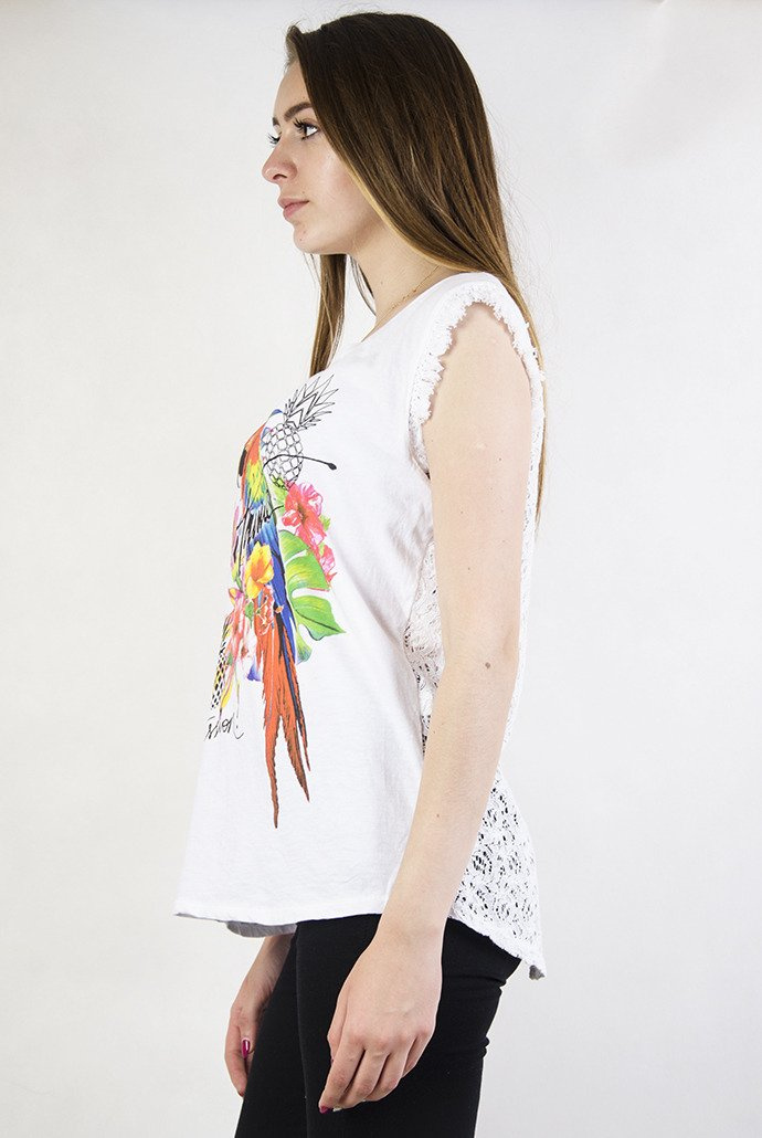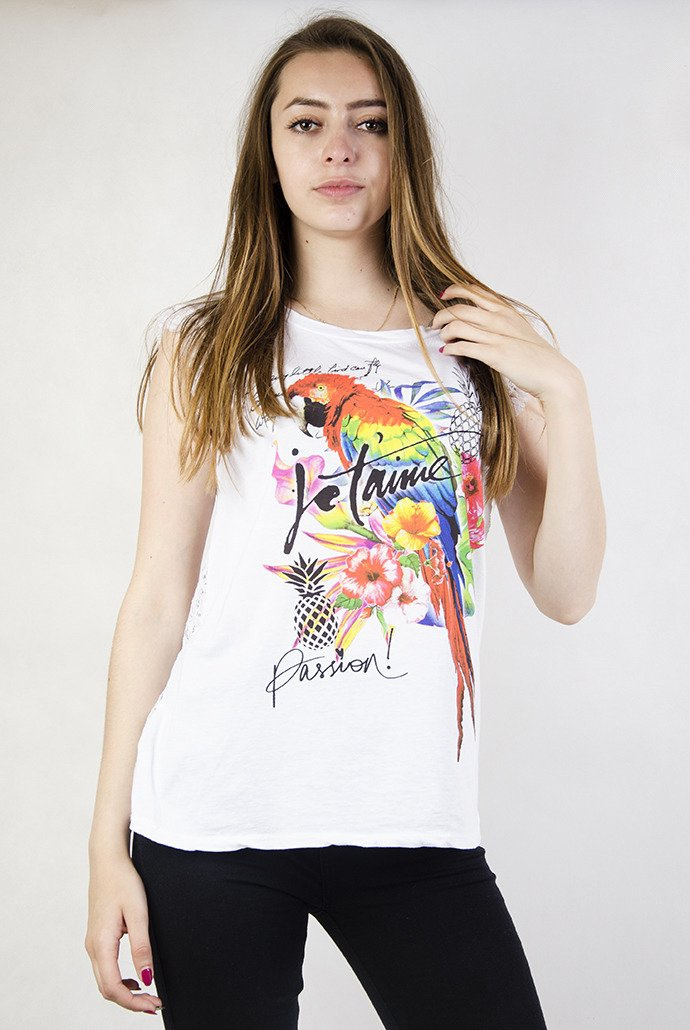 Biała bluzka bez rękawów z kolorowym nadrukiem