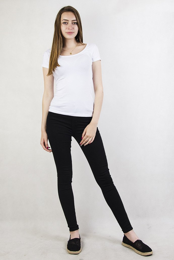 Biała bluzka basic z wyciętymi plecami.