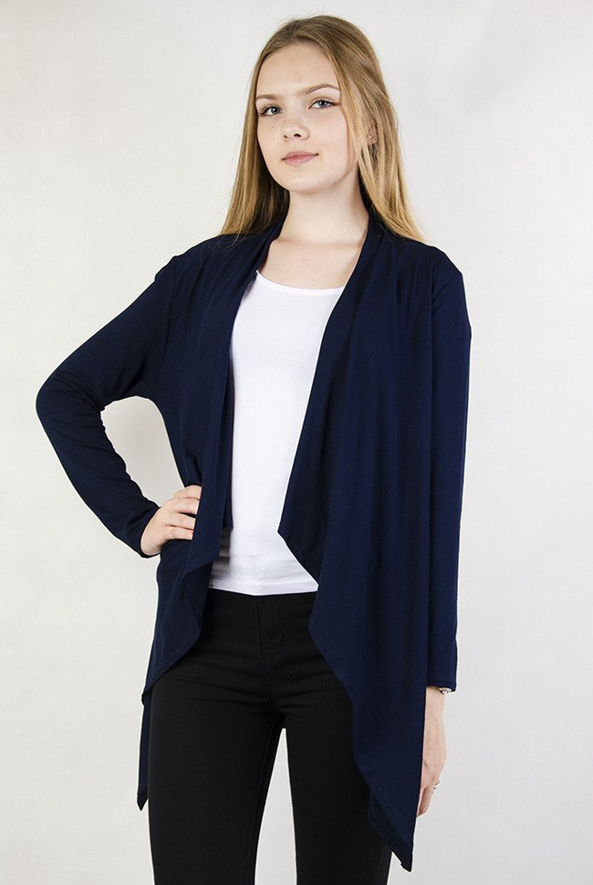 Granatowa narzutka. Nie posiada zapięcia.