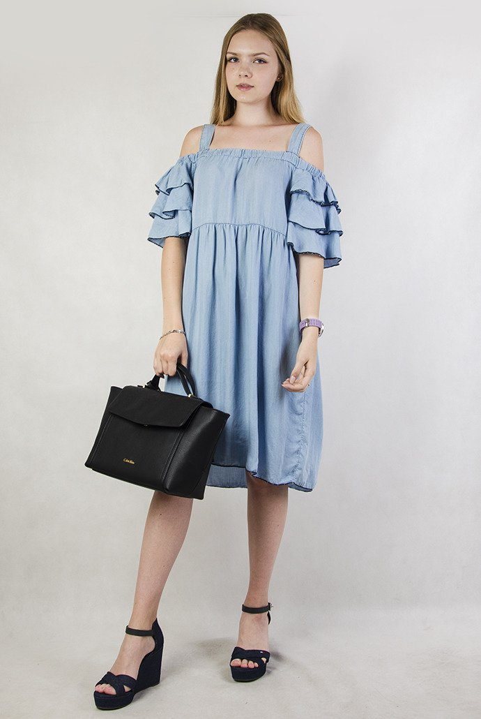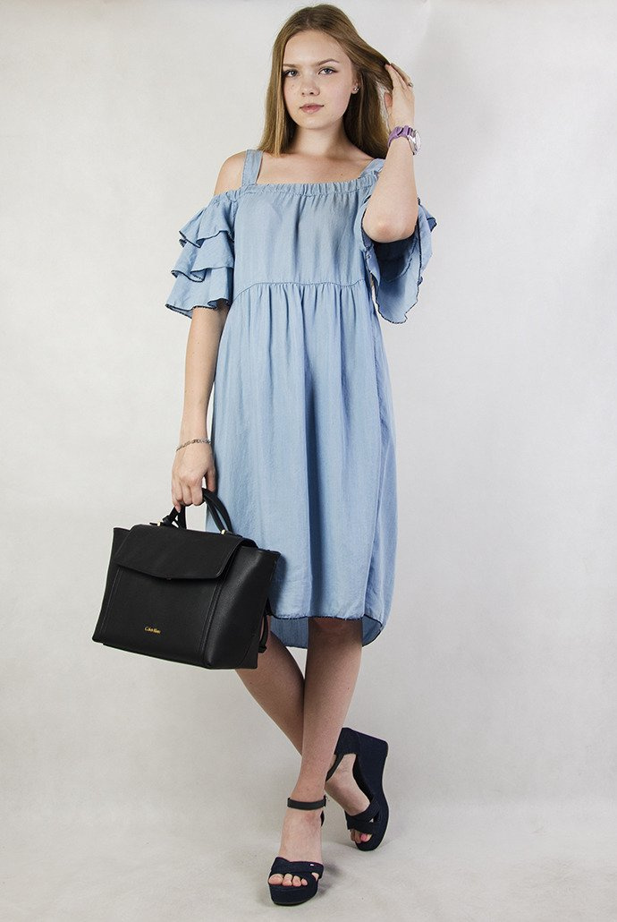 Jasnoniebieska sukienka z falbanami, na ramiączka