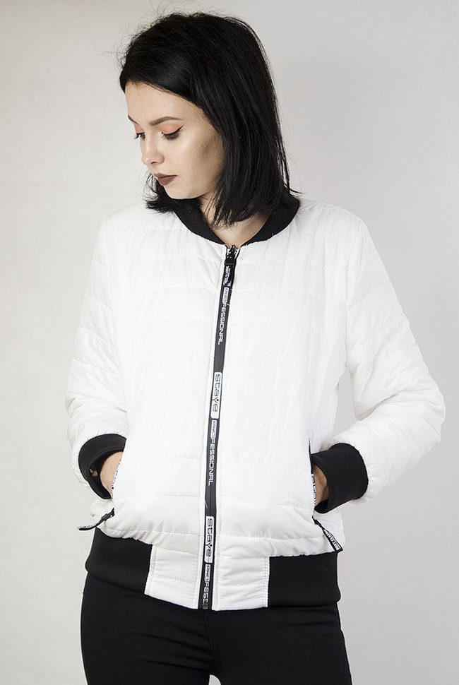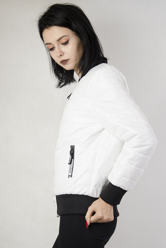 Biała, pikowana kurtka z białymi wstawkami