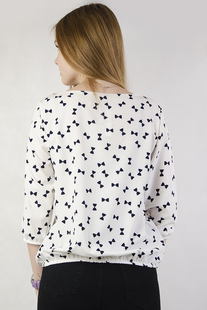 Biała bluzka w czarne kokardki