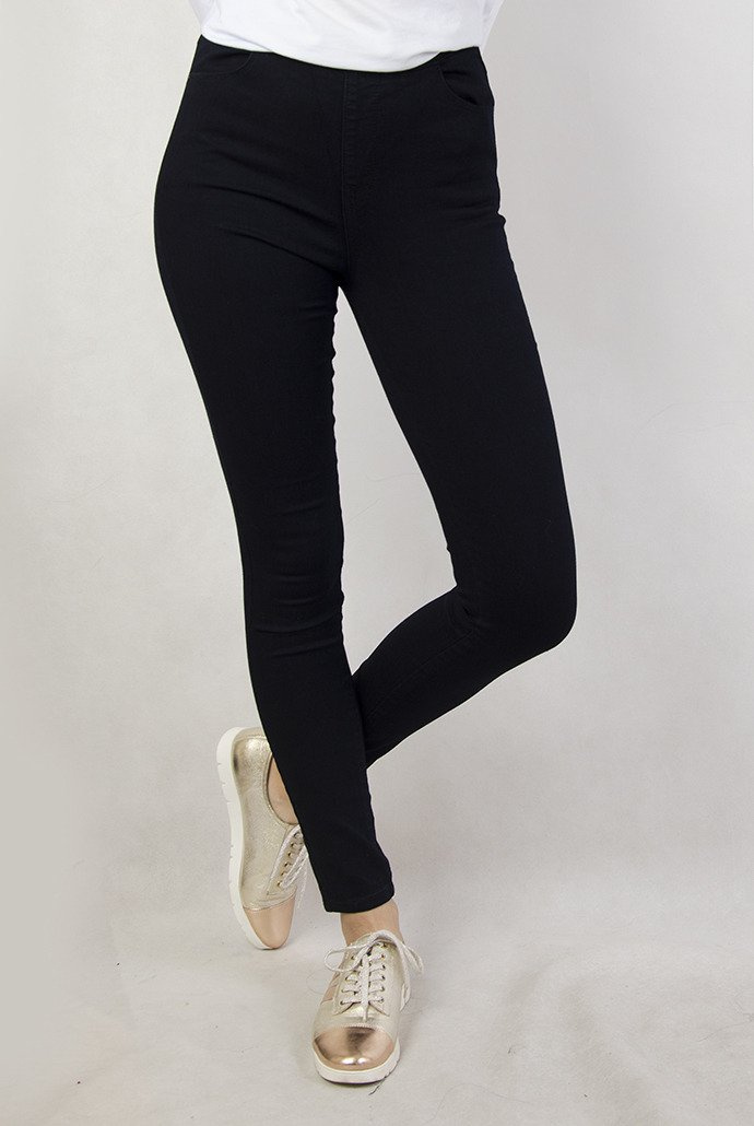 Granatowe spodnie skinny z gumą w pasie