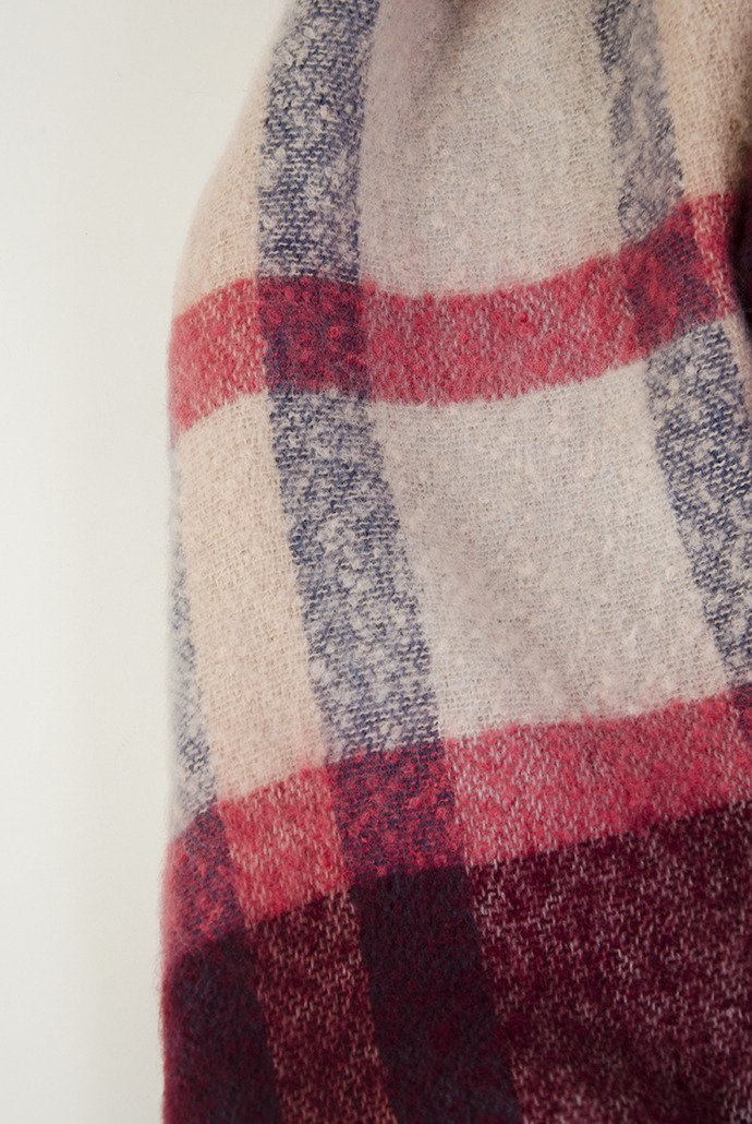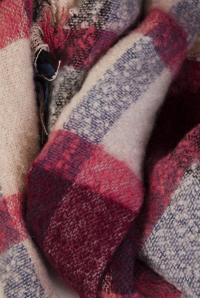 Szal wykonany z przyjemnego w dotyku materiału zapewniającego ciepło w najchłodniejsze dni.
