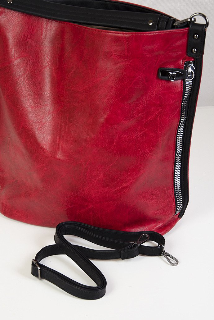 Duża czerwona torebka z ozdobnym zamkiem z boku