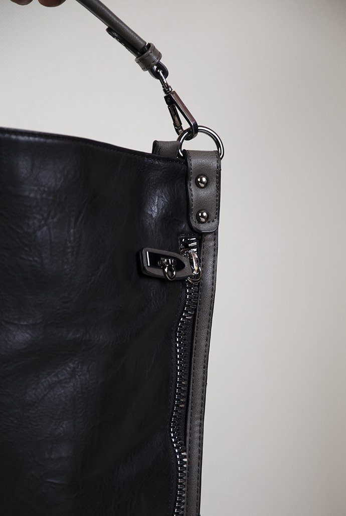 Duża czarna torebka z ozdobnym zamkiem z boku