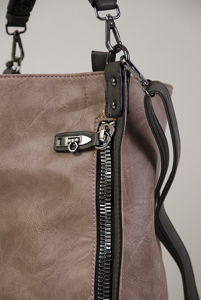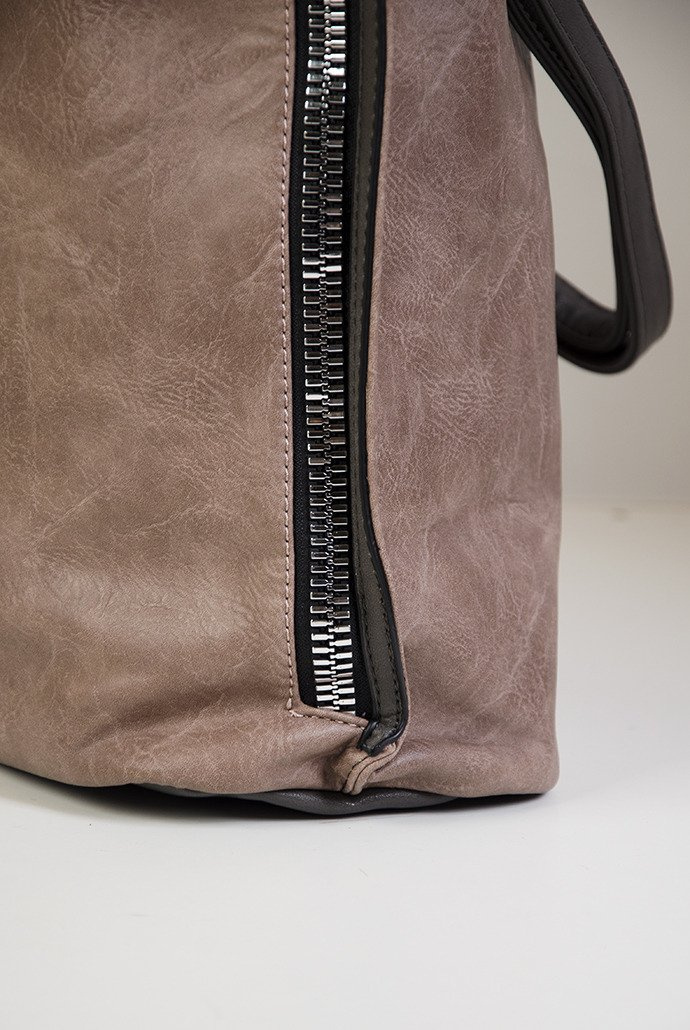 Duża beżowa torebka z ozdobnym zamkiem z boku