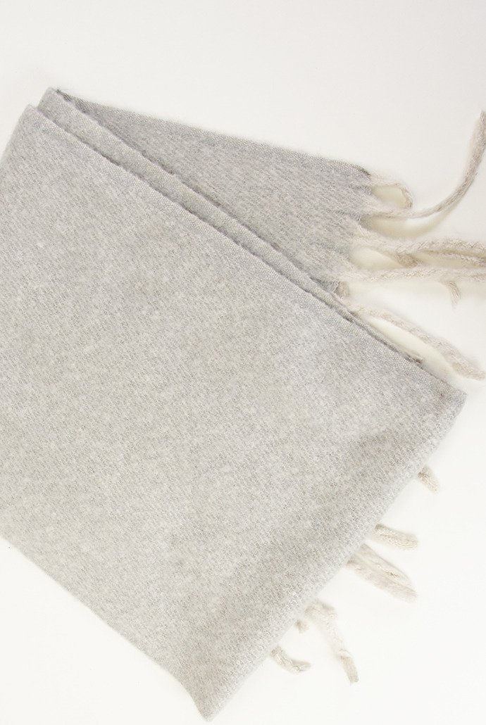 Ciepły szaro-beżowy szal zakończony frędzelkami