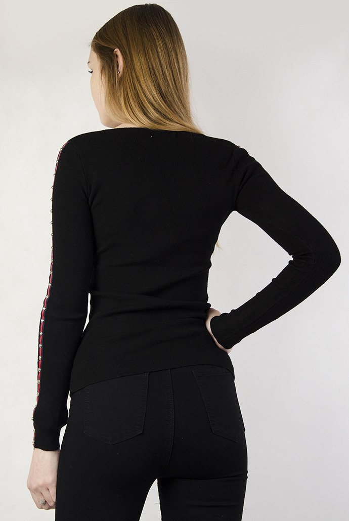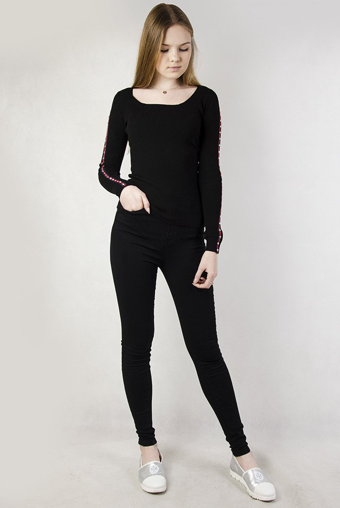 Czarna, przylegająca bluzka z ćwiekami u boku