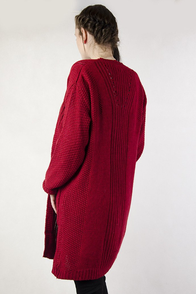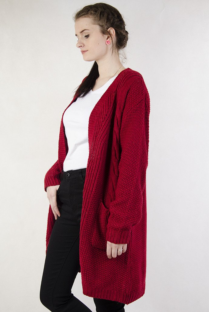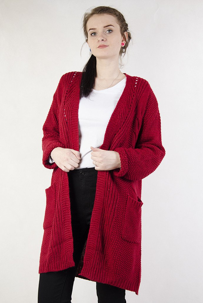 Długi czerwony sweter z kieszeniami
