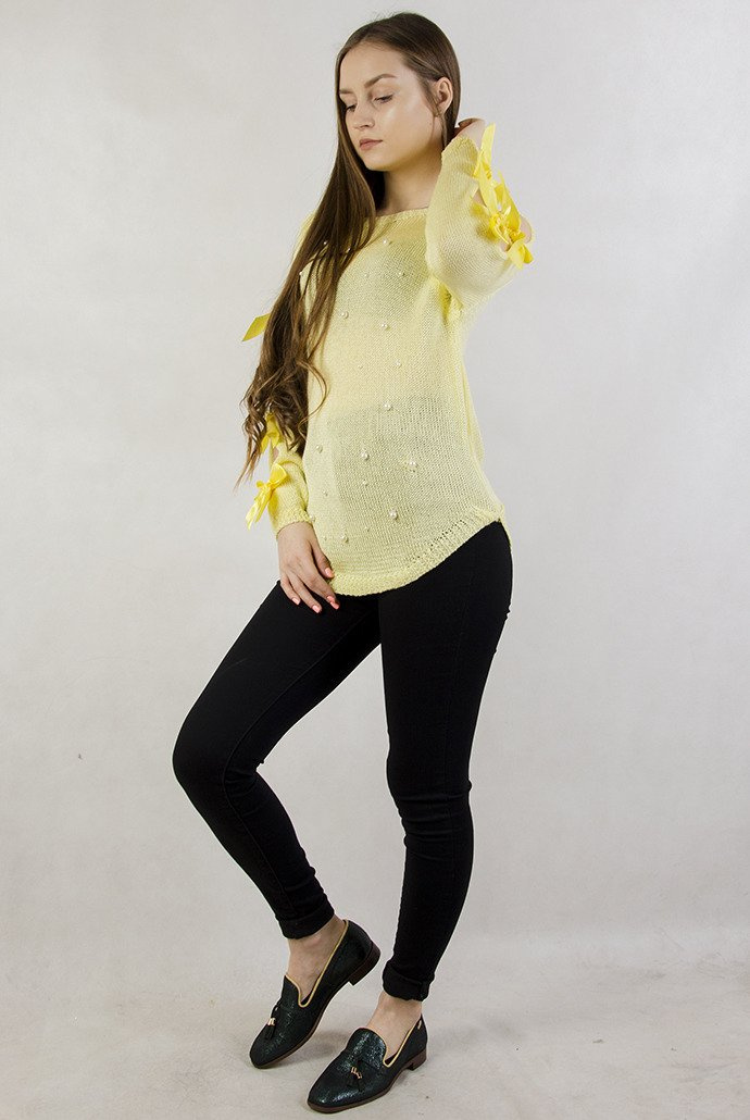 Żółty sweter z koralikami