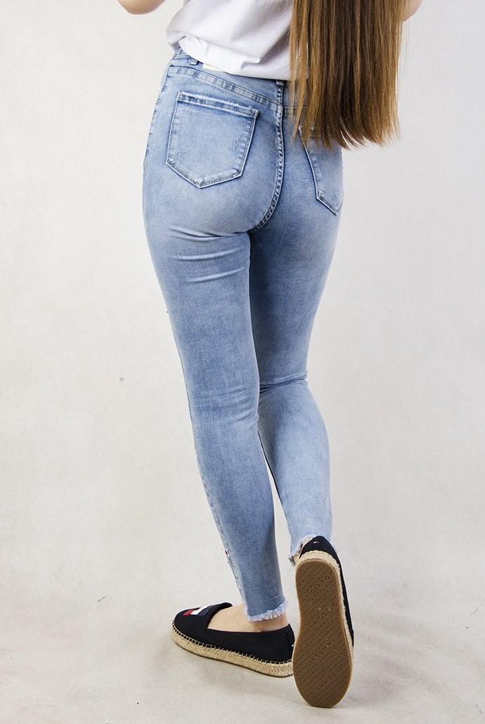 Jasne spodnie jeansowe z kolorowymi kwiatami