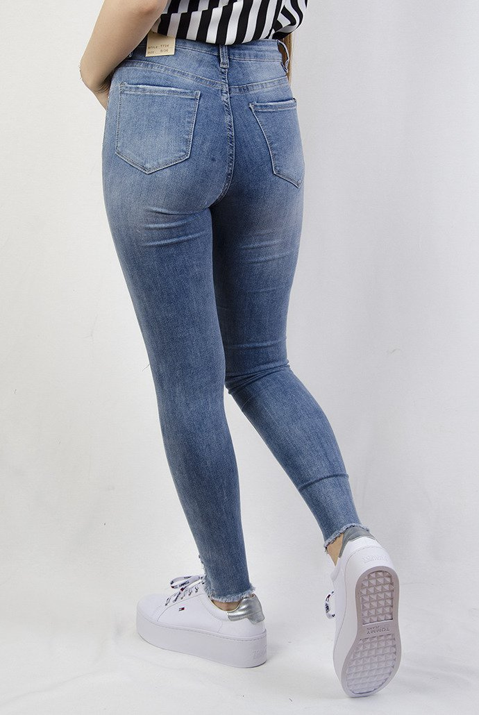 Jasne spodnie z przetarciami i szarpaniem
