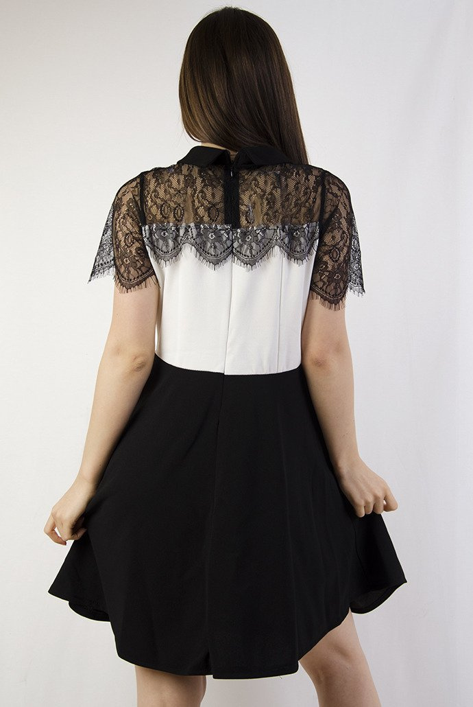 Biało czarna rozkloszowana sukienka z kołnierzem