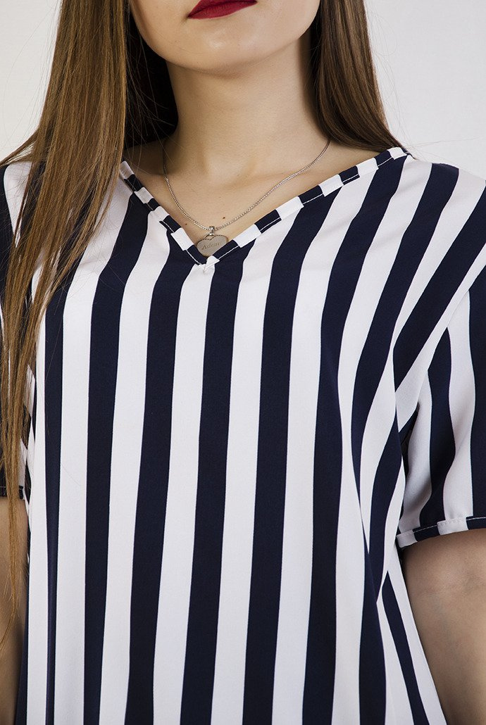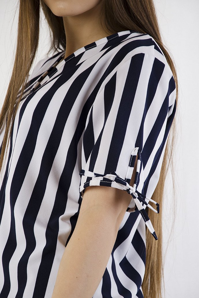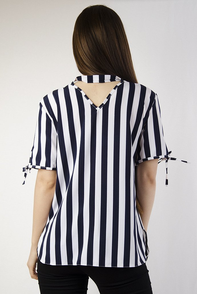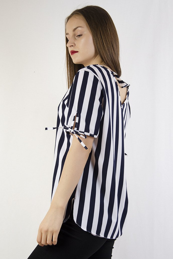 Bluzka w biało granatowe pasy z wycięciem na plecach