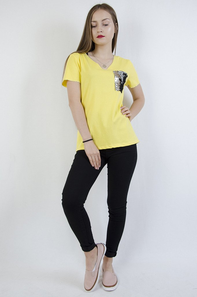 Żółta bluzka z kieszonką w cekiny