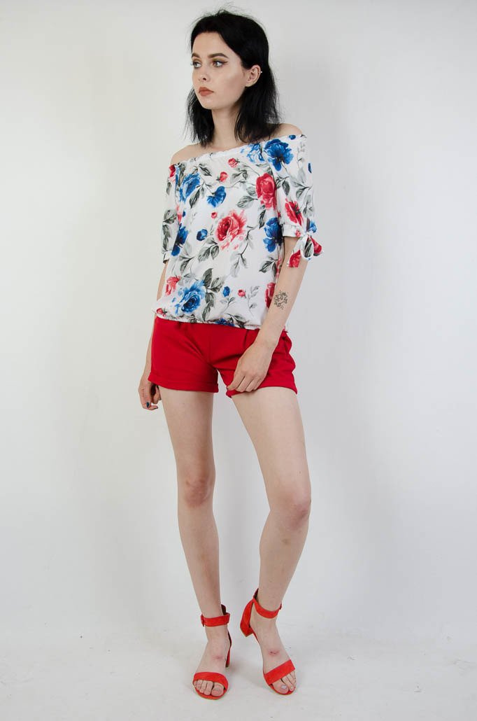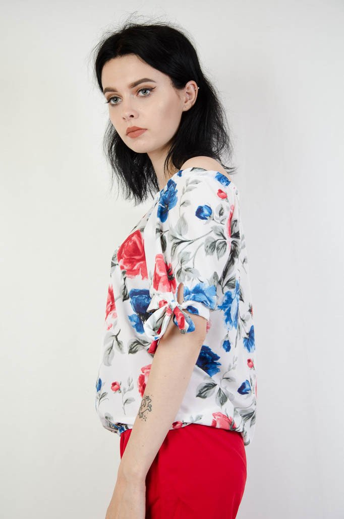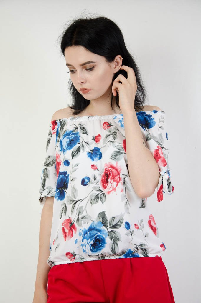 Biała bluzka w kolorowe kwiaty