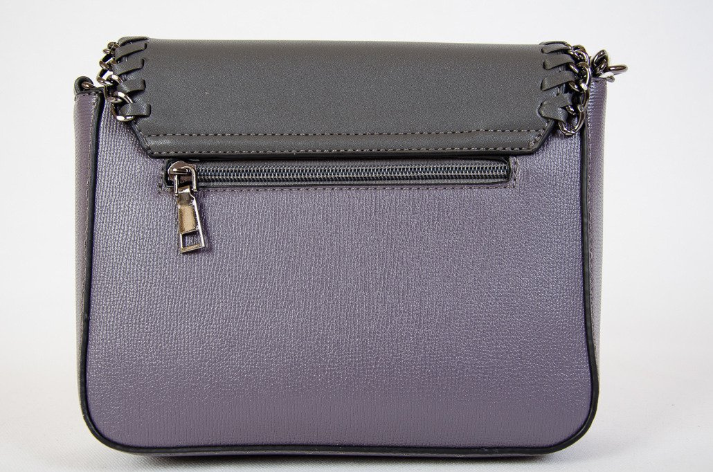 Szara mała torebka z klapką plecioną łańcuszkiem