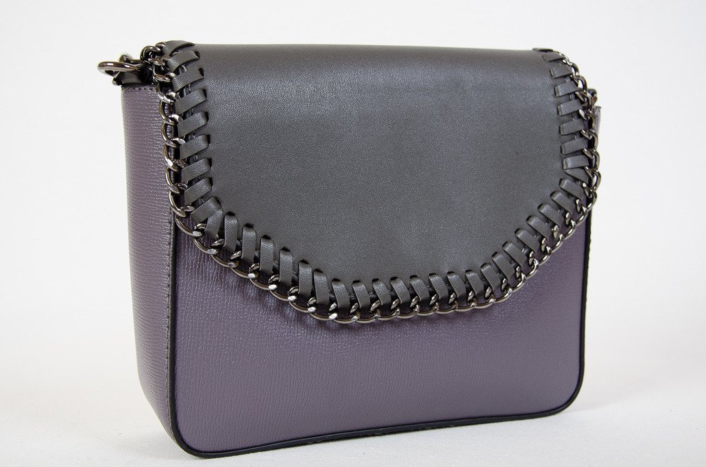 Szara mała torebka z klapką plecioną łańcuszkiem.