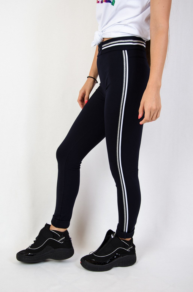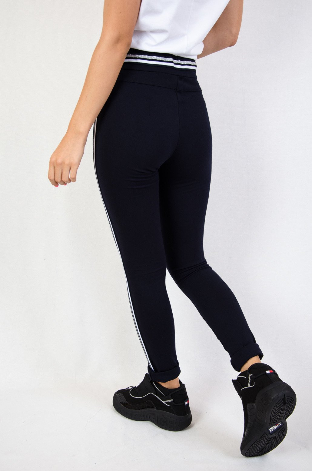 Granatowe spodnie z lampasami oraz gumką w pasie