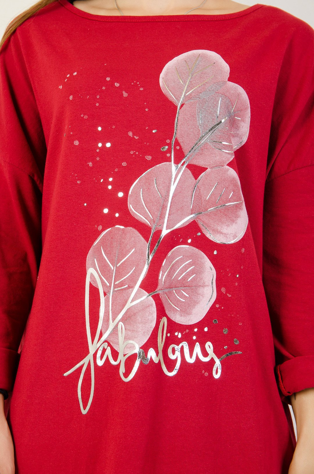 Czerwona sukienka z kieszeniami oraz kwiatem z przodu