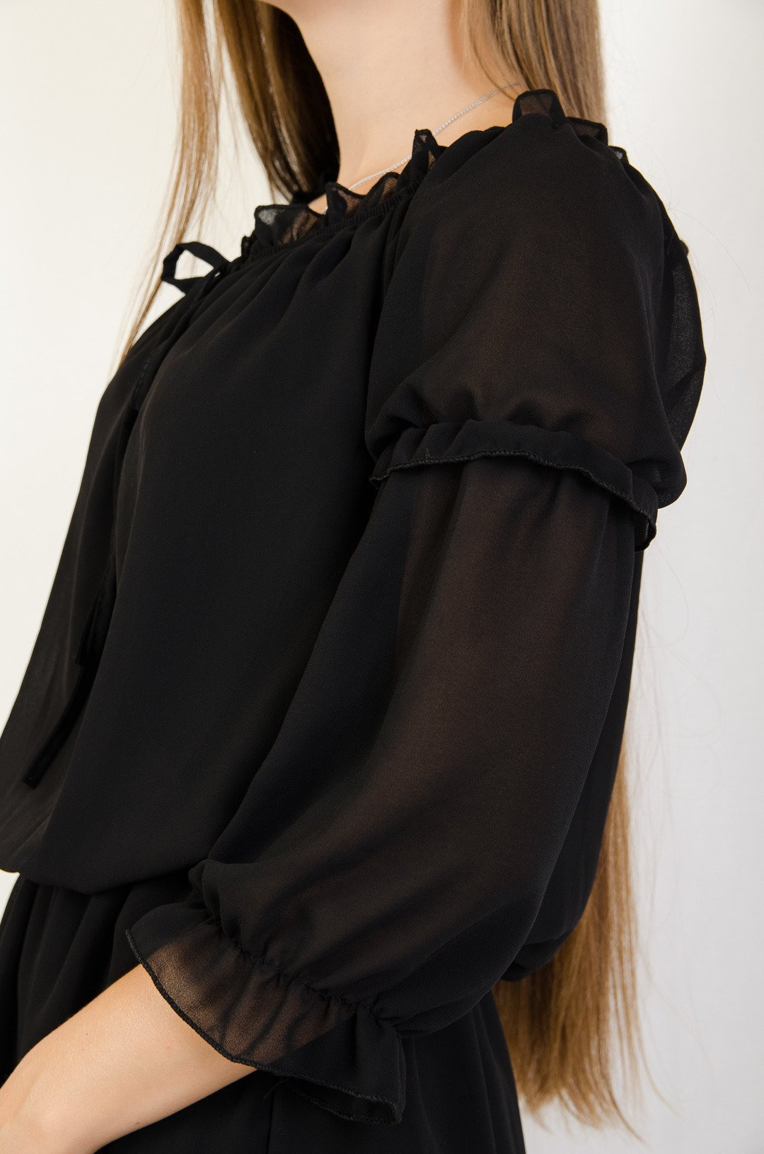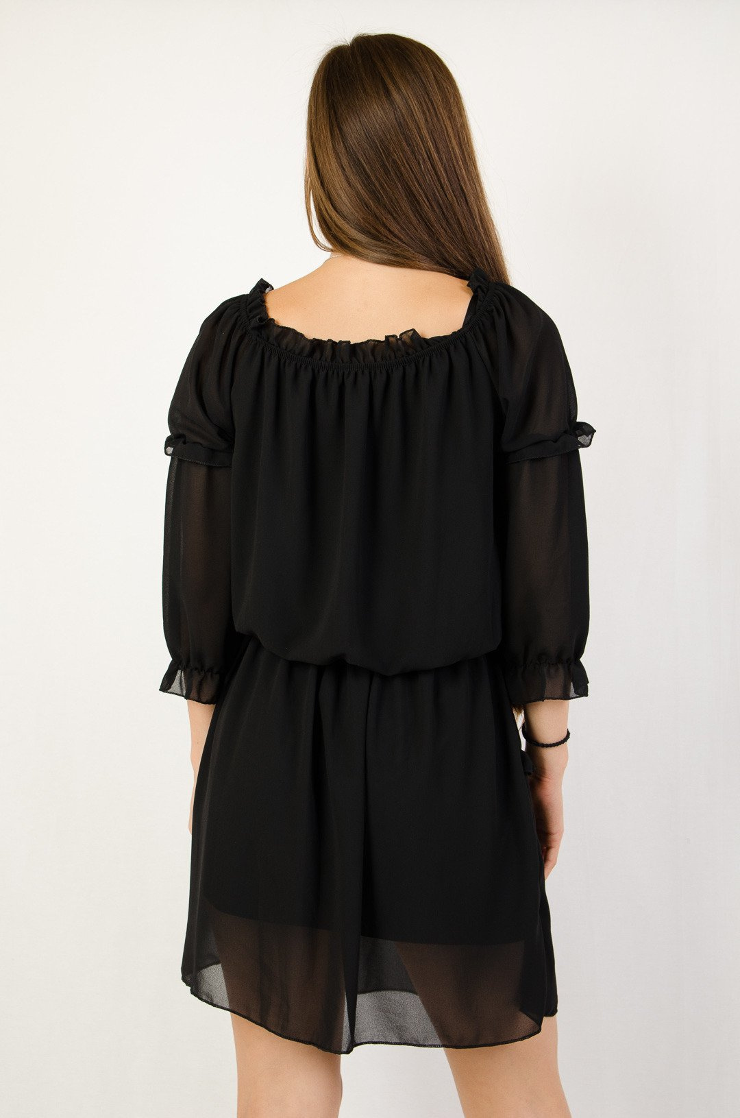 Czarna sukienka hiszpanka z wiązaniem przy dekolcie.