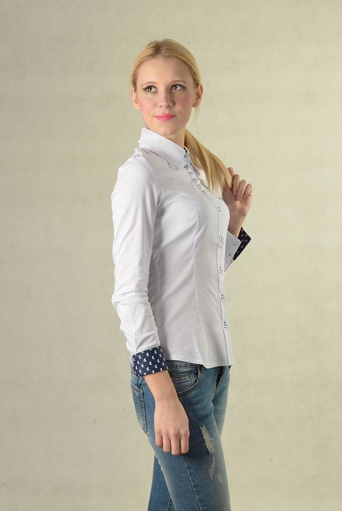 Elegancka koszula, zapinana na guziczki. Mankiety w kokardki.