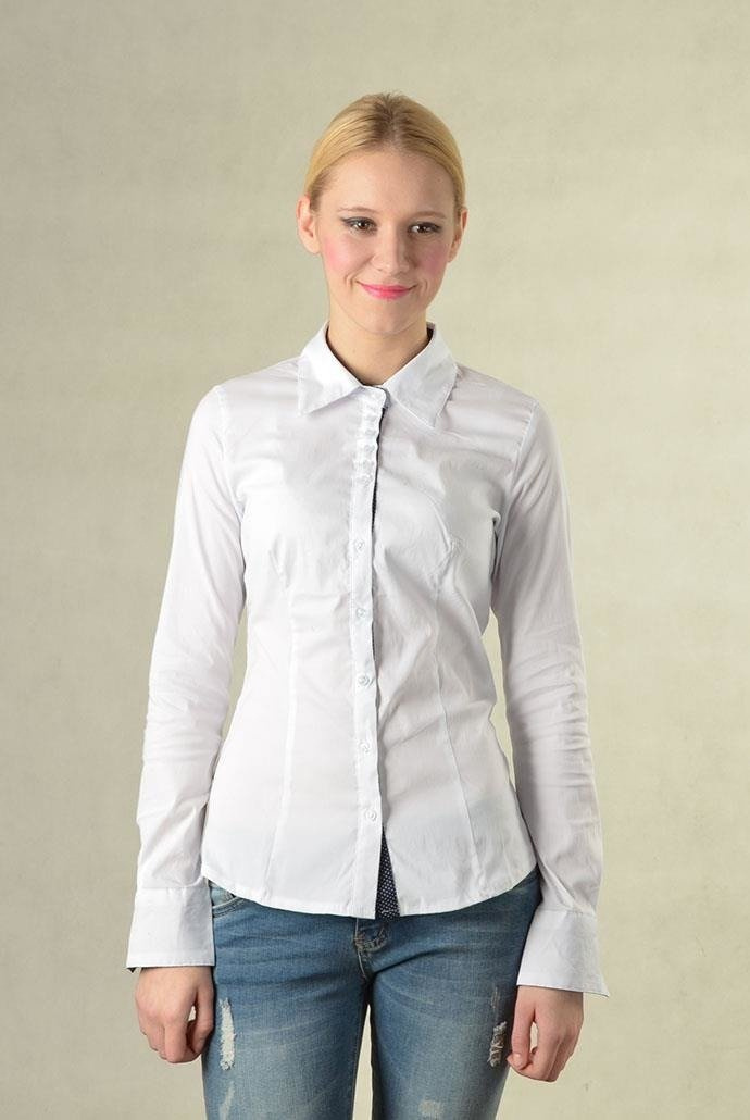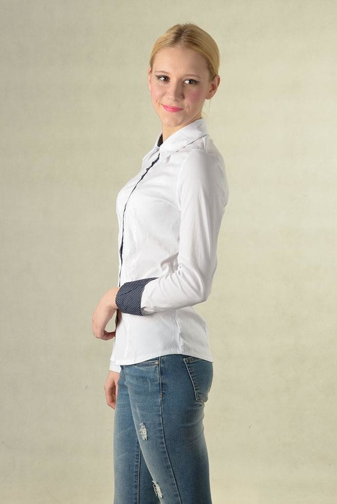 Elegancka koszula, zapinana na guziczki. Mankiety w kropki .