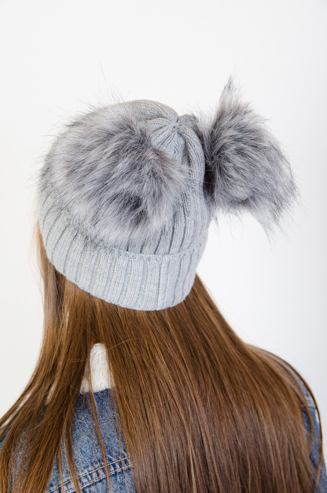 Szara czapka z dwoma pomponami