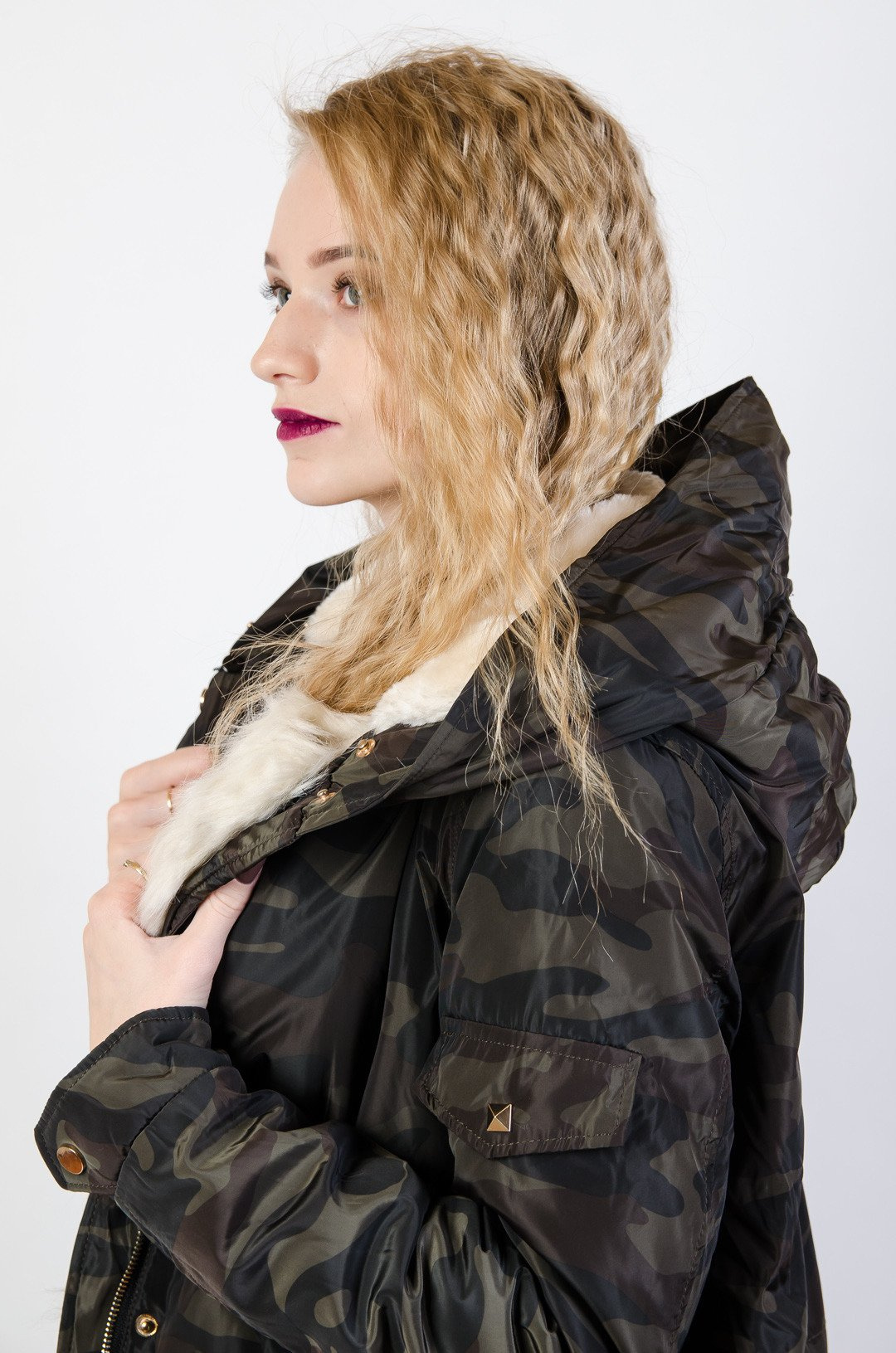 Kurtka moro ocieplana z futerkiem. Futerko przy zamku oraz na kapturze jest odpinane, co widać na zdjęciach.