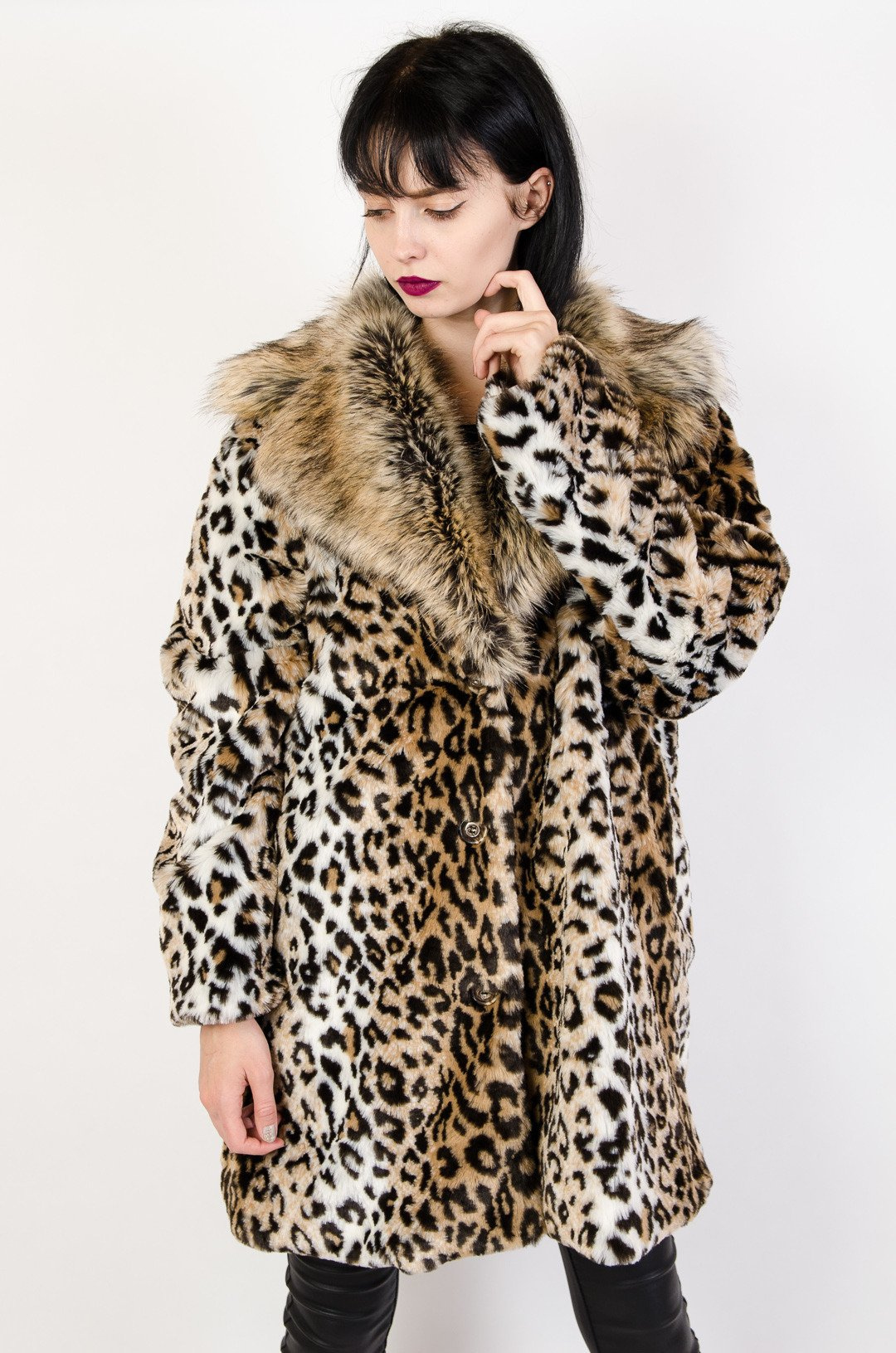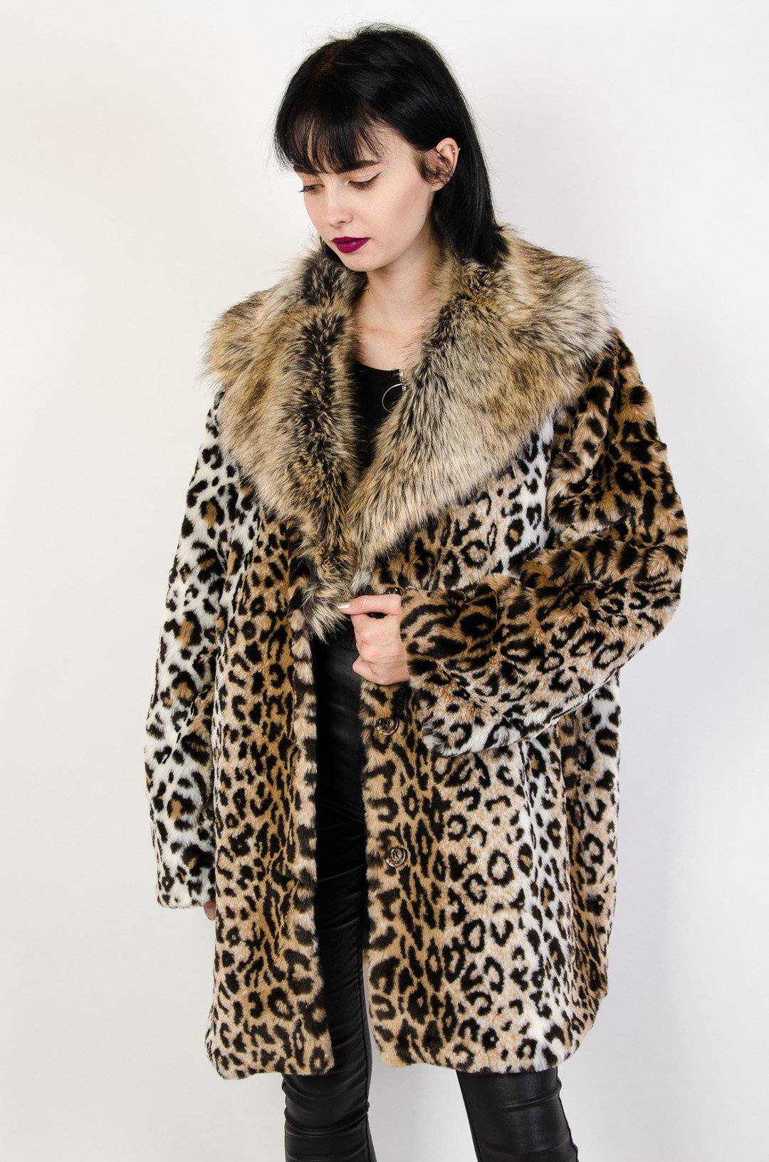 Sztuczne futro panterka z kołnierzem