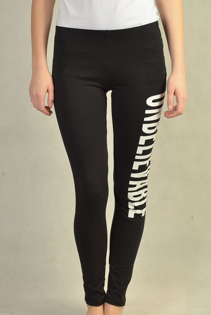 Bardzo wygodne, idealnie dopasowujące się do ciała legginsy, z napisem UNBELIEVABLE