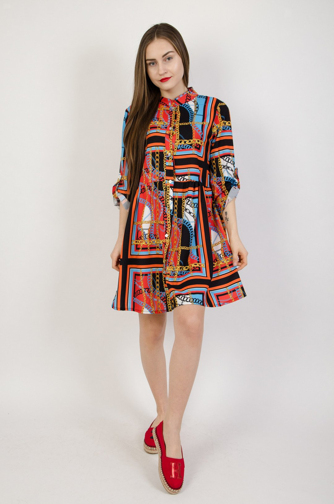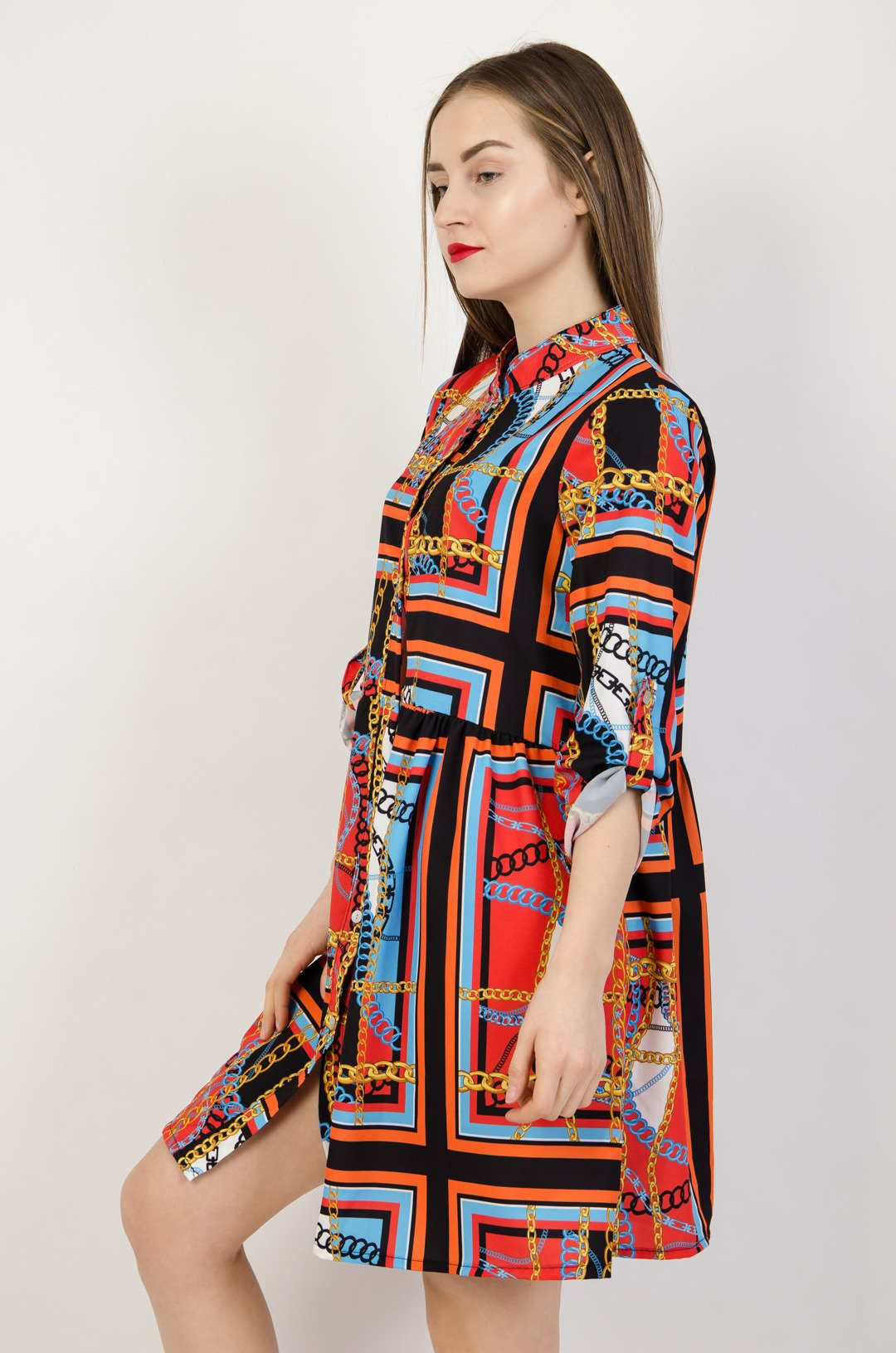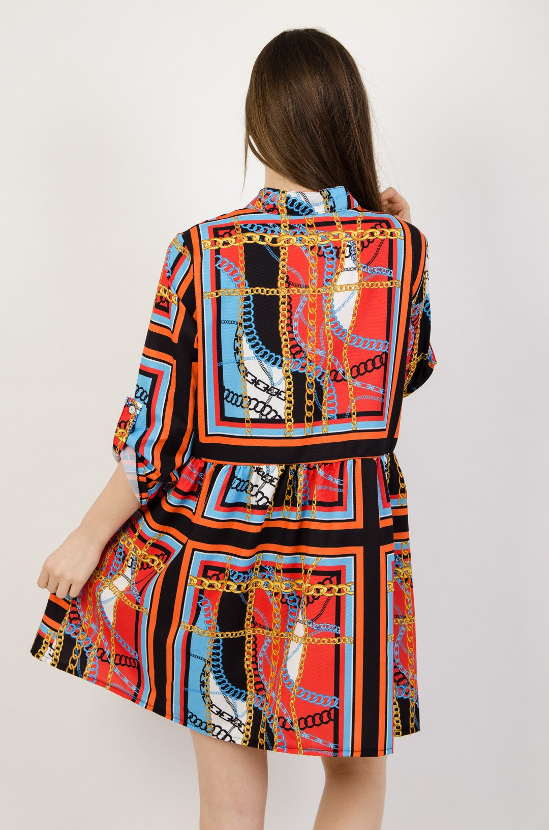 Wzorzysta sukienka zapinana na guziki