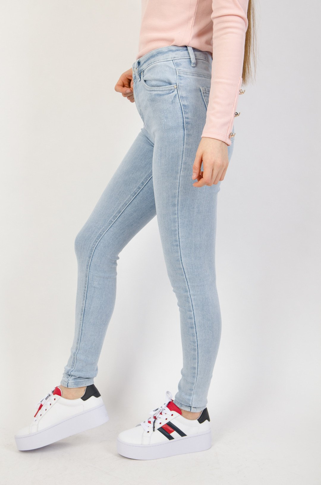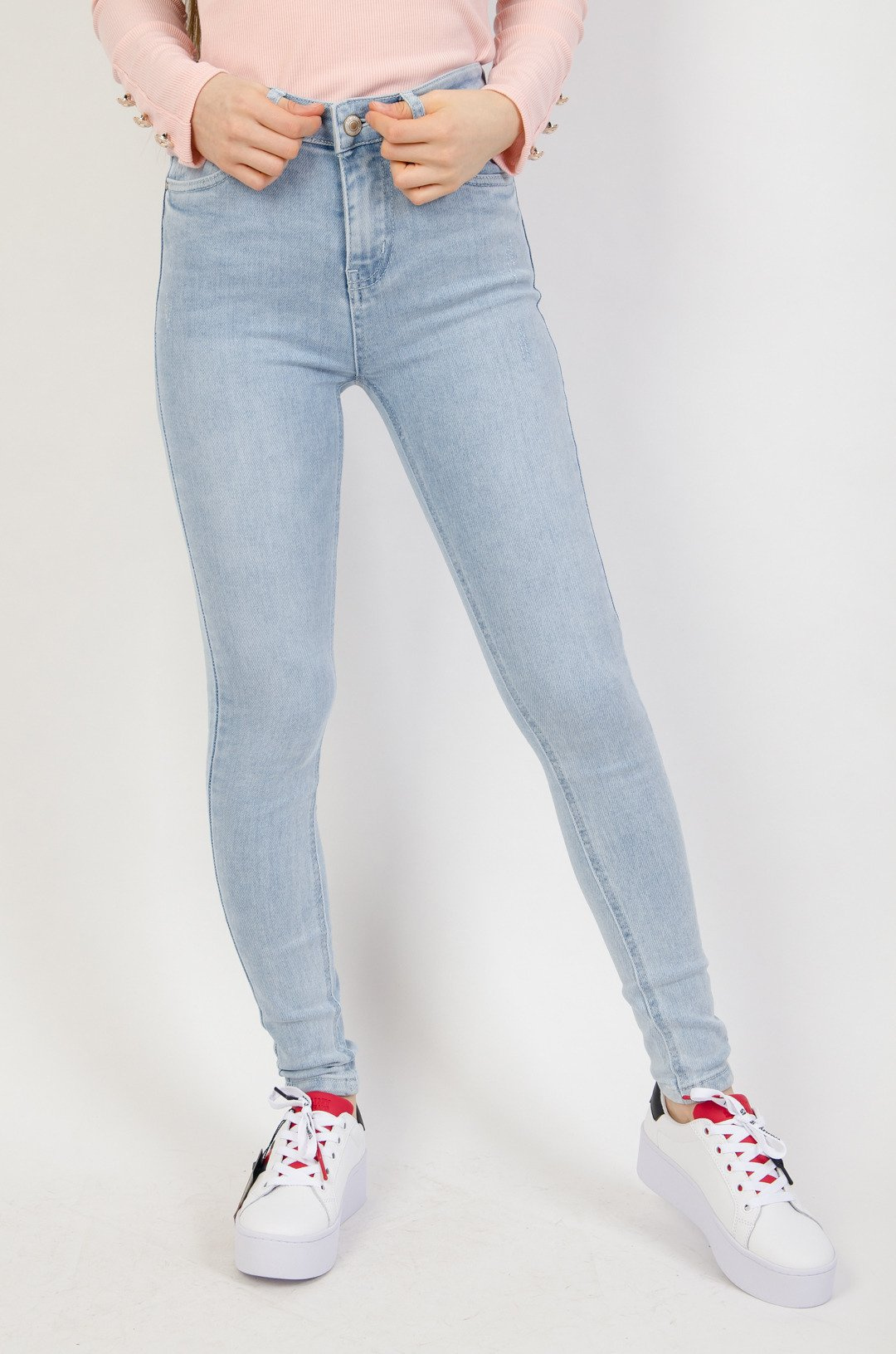 Jasne spodnie jeansowe z wyższym stanem