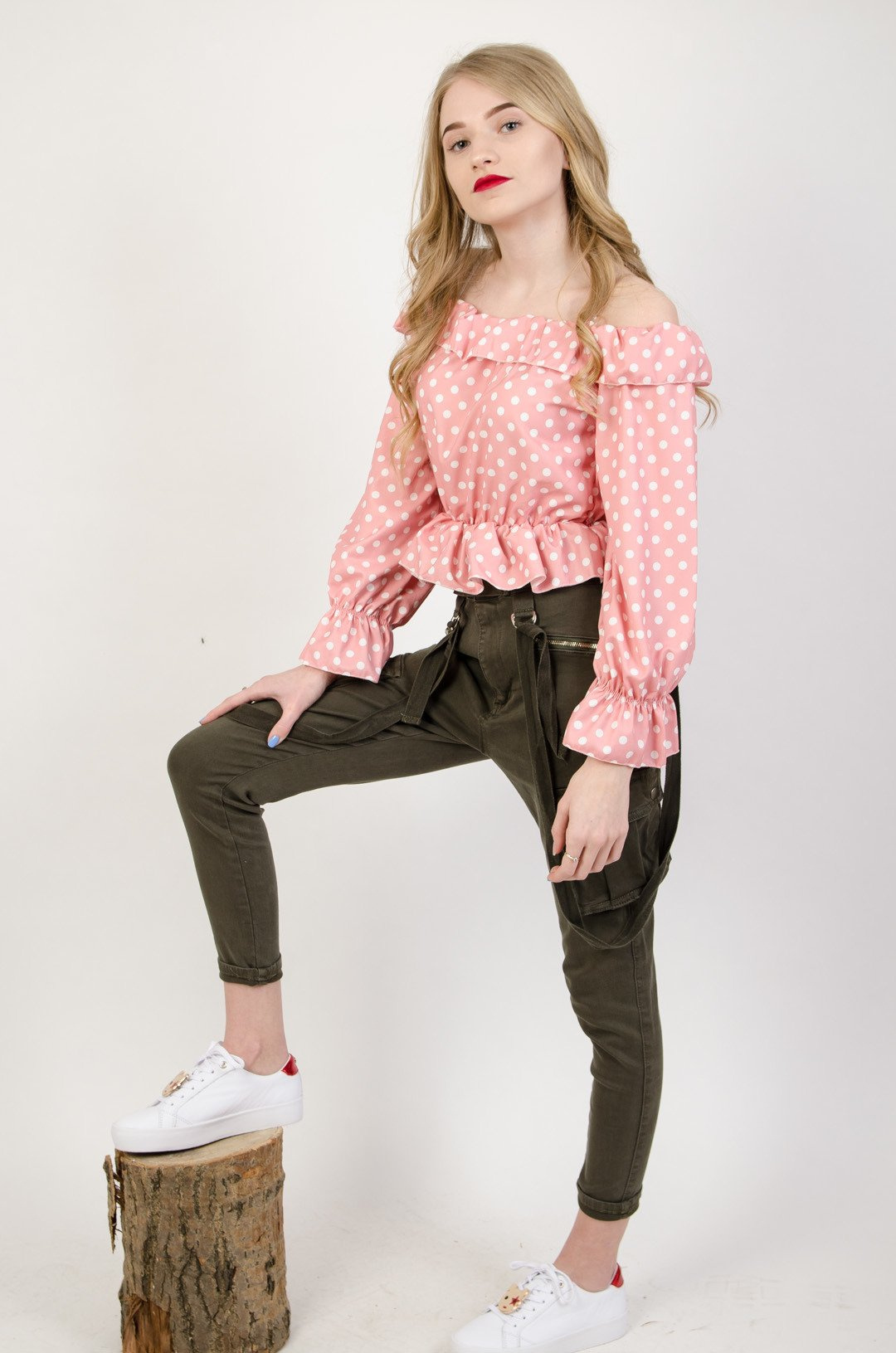Spodnie joggery w kolorze khaki z szelkami