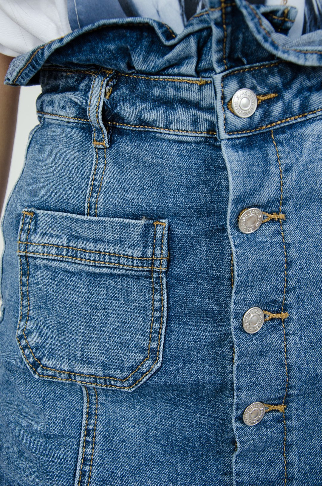 Jeansowa spódnica z falbanką w pasie.