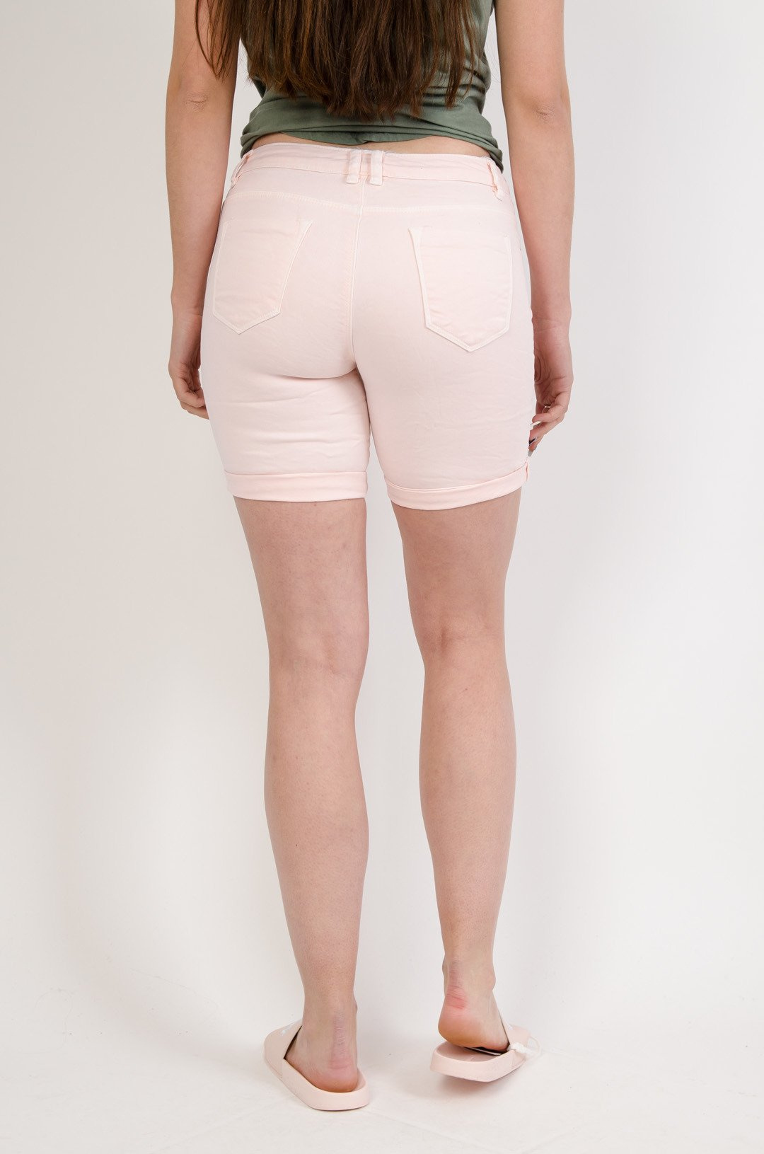 Różowe bermudy z trzema zamkami
