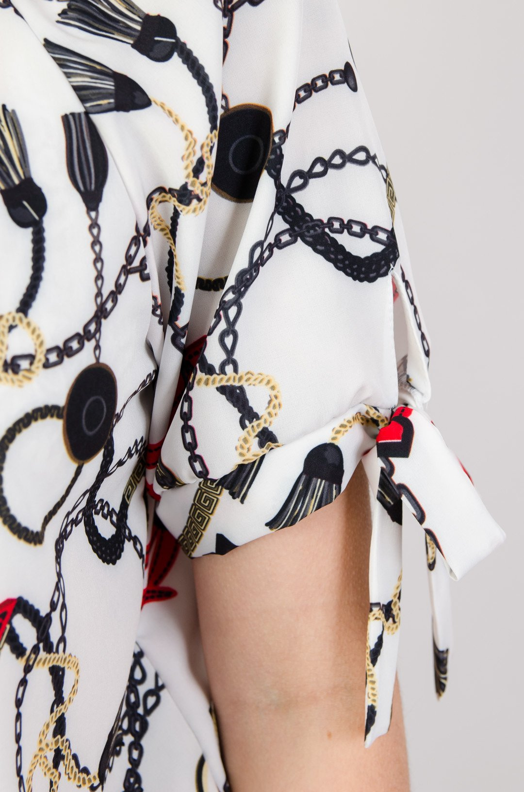 Biała bluzka z wzorem pasków oraz łańcuszków