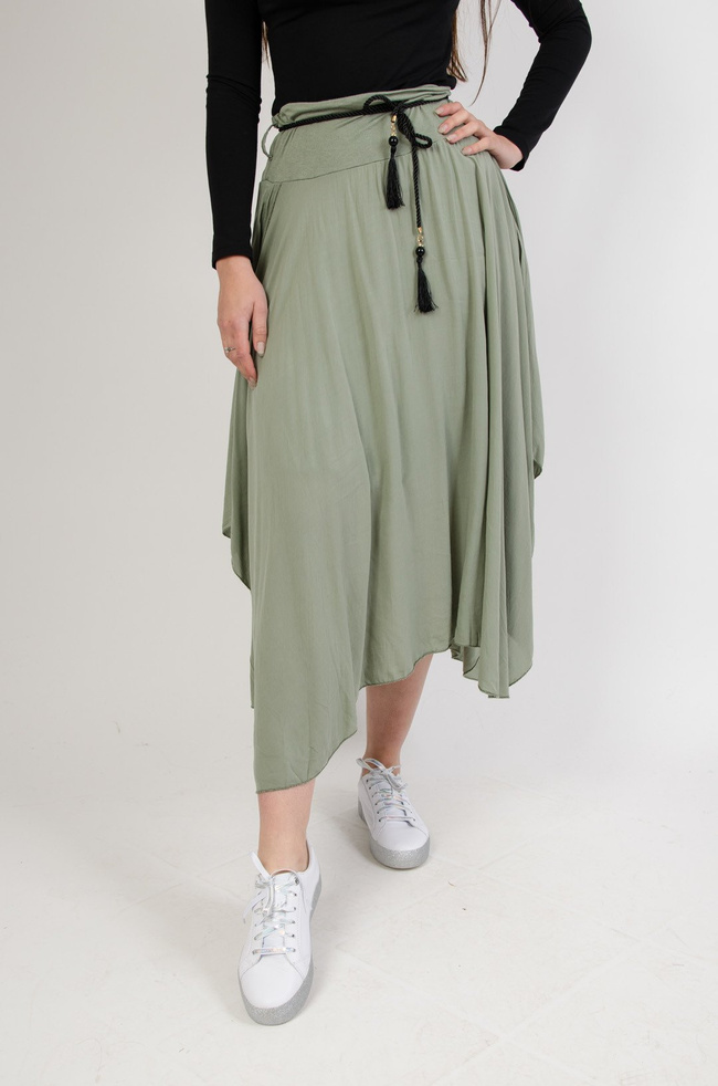 Długa asymetryczna spódnica z wycięciem+ pasek