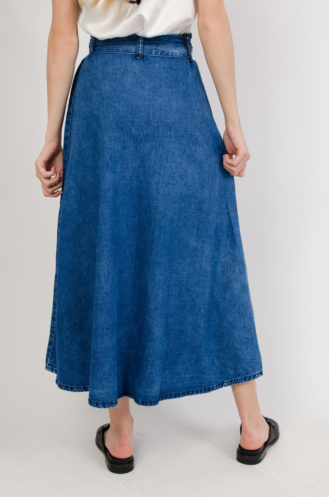 Długa rozszerzana spódnica z guzikami