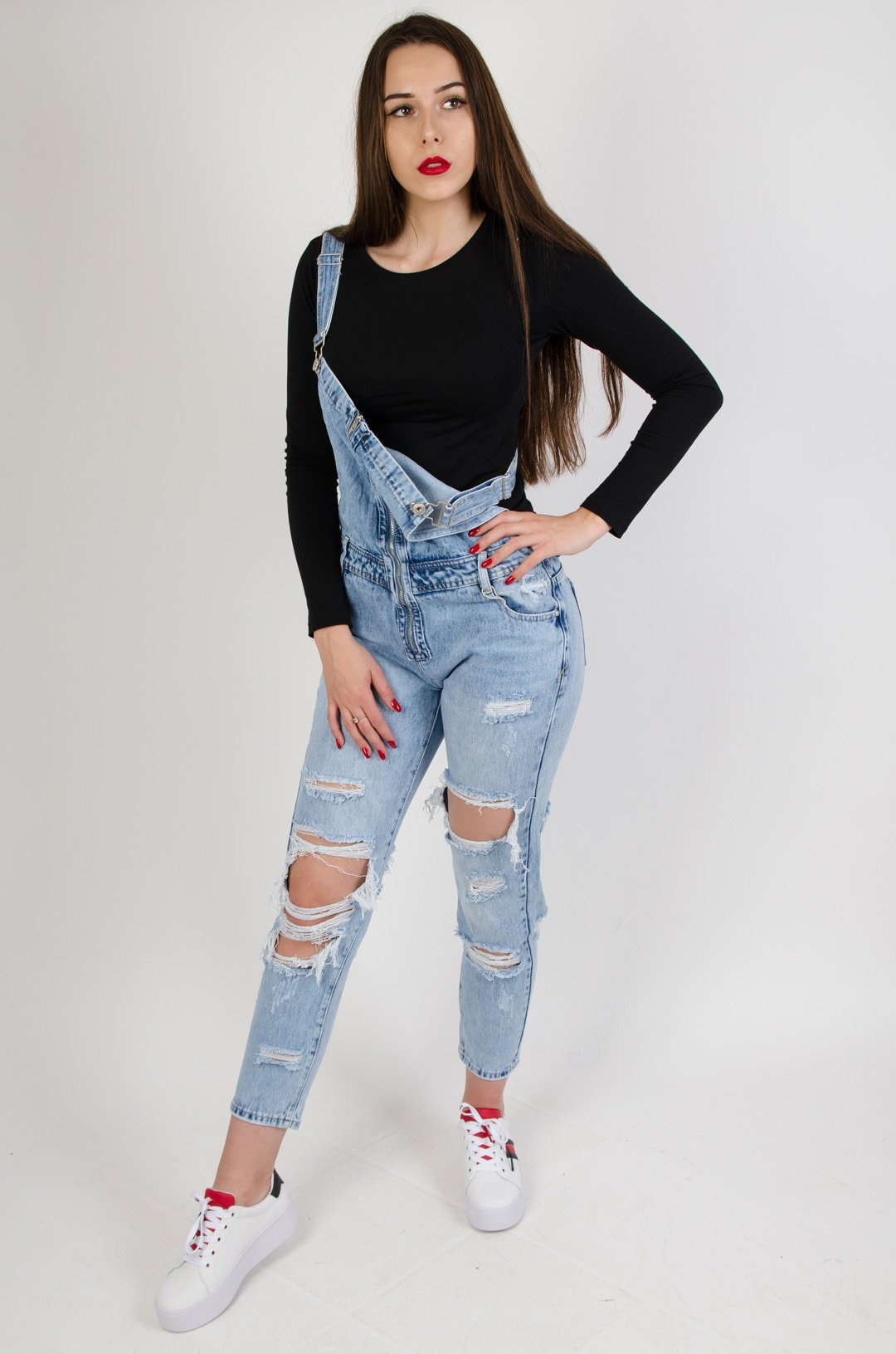 Jeansowe ogrodniczki z dziurami