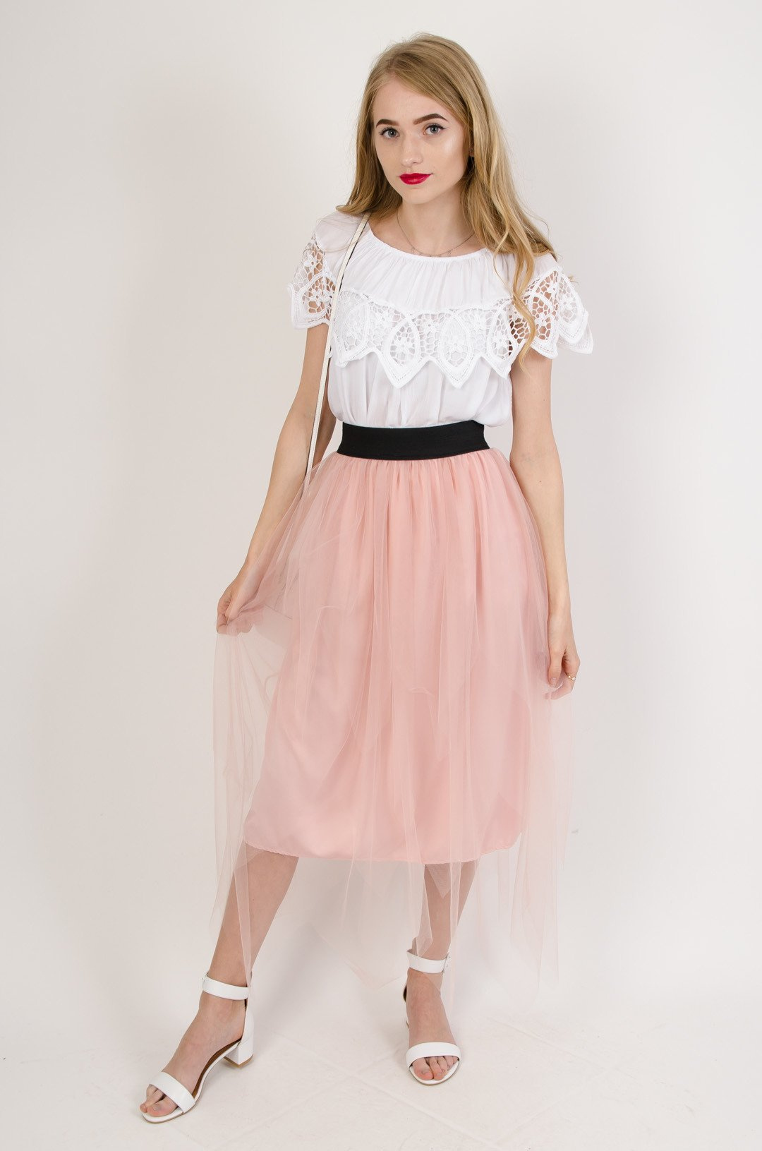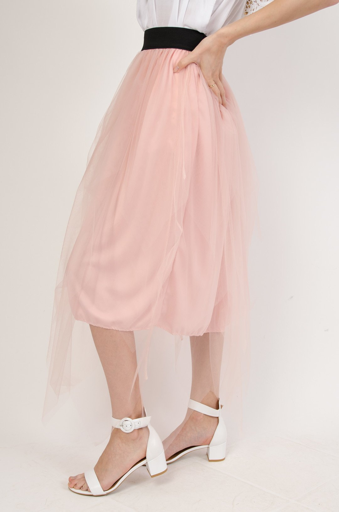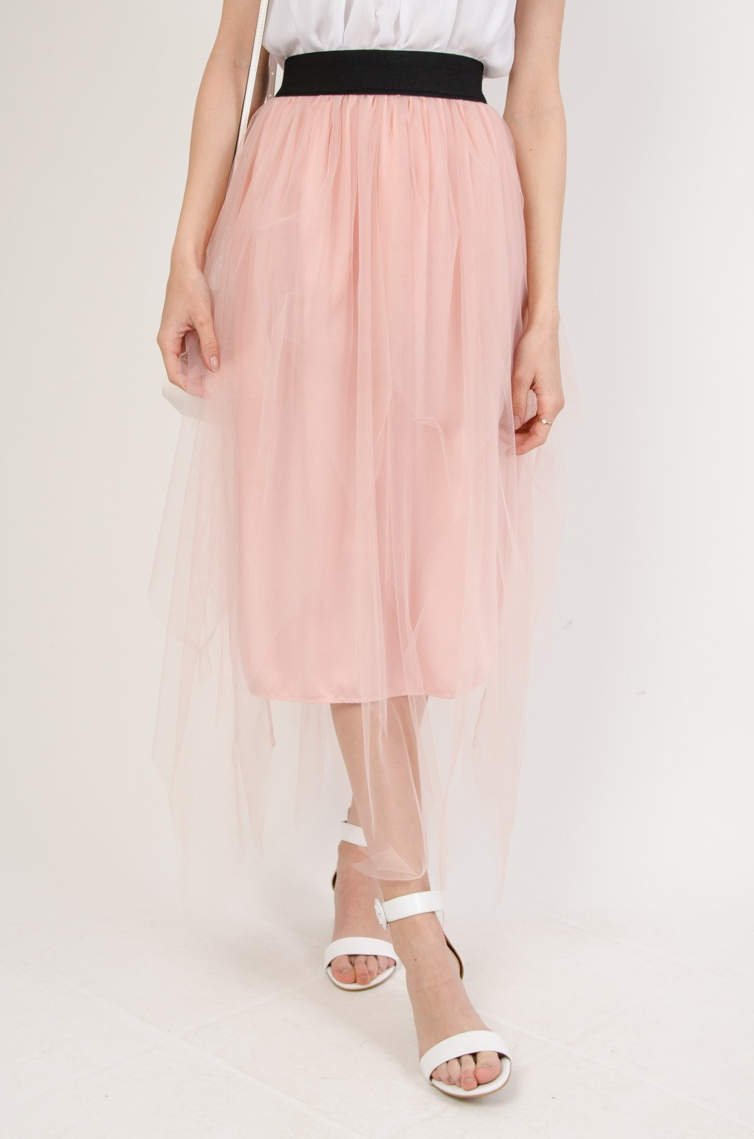 Różowa spódnica midi z tiulem