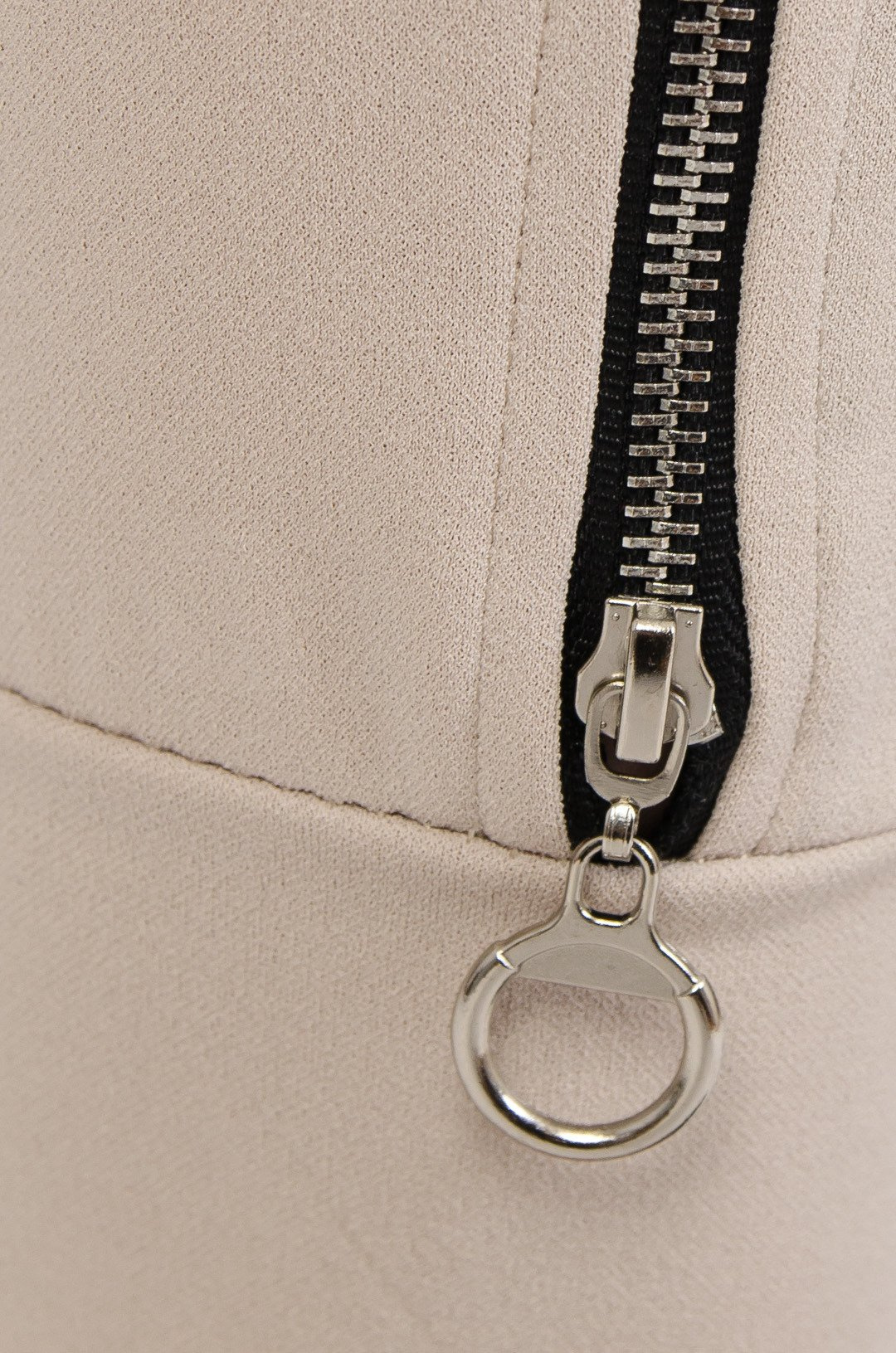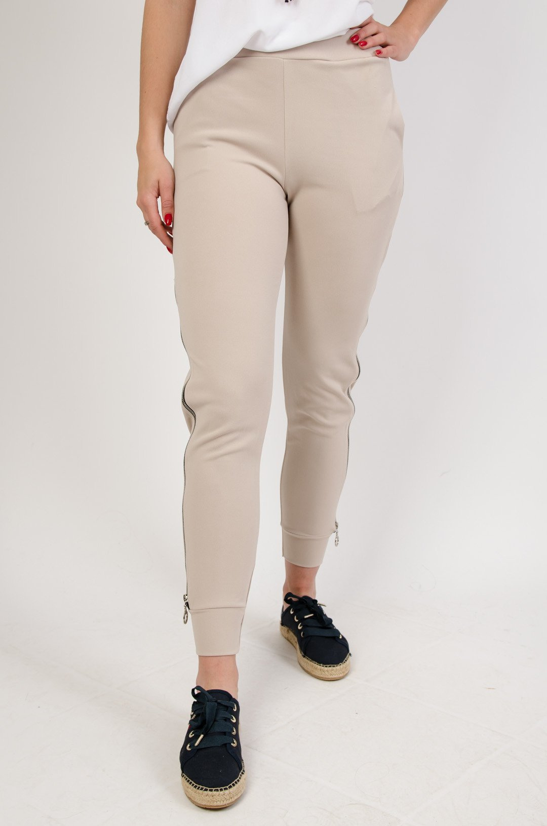 Beżowe spodnie materiałowe z zamkiem na nogawce