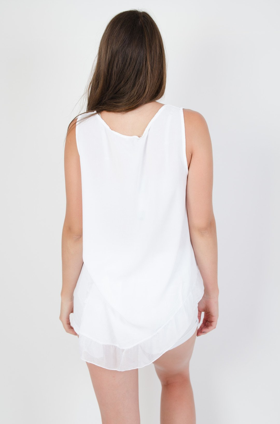 Biała asymetryczna bluzka na ramiączka z kwiatami