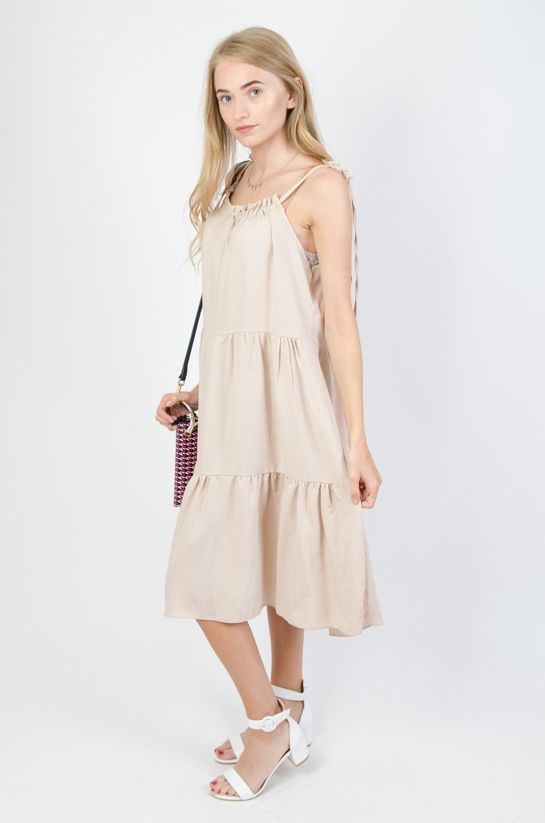 Beżowa warstwowa sukienka na cienkich ramiączkach